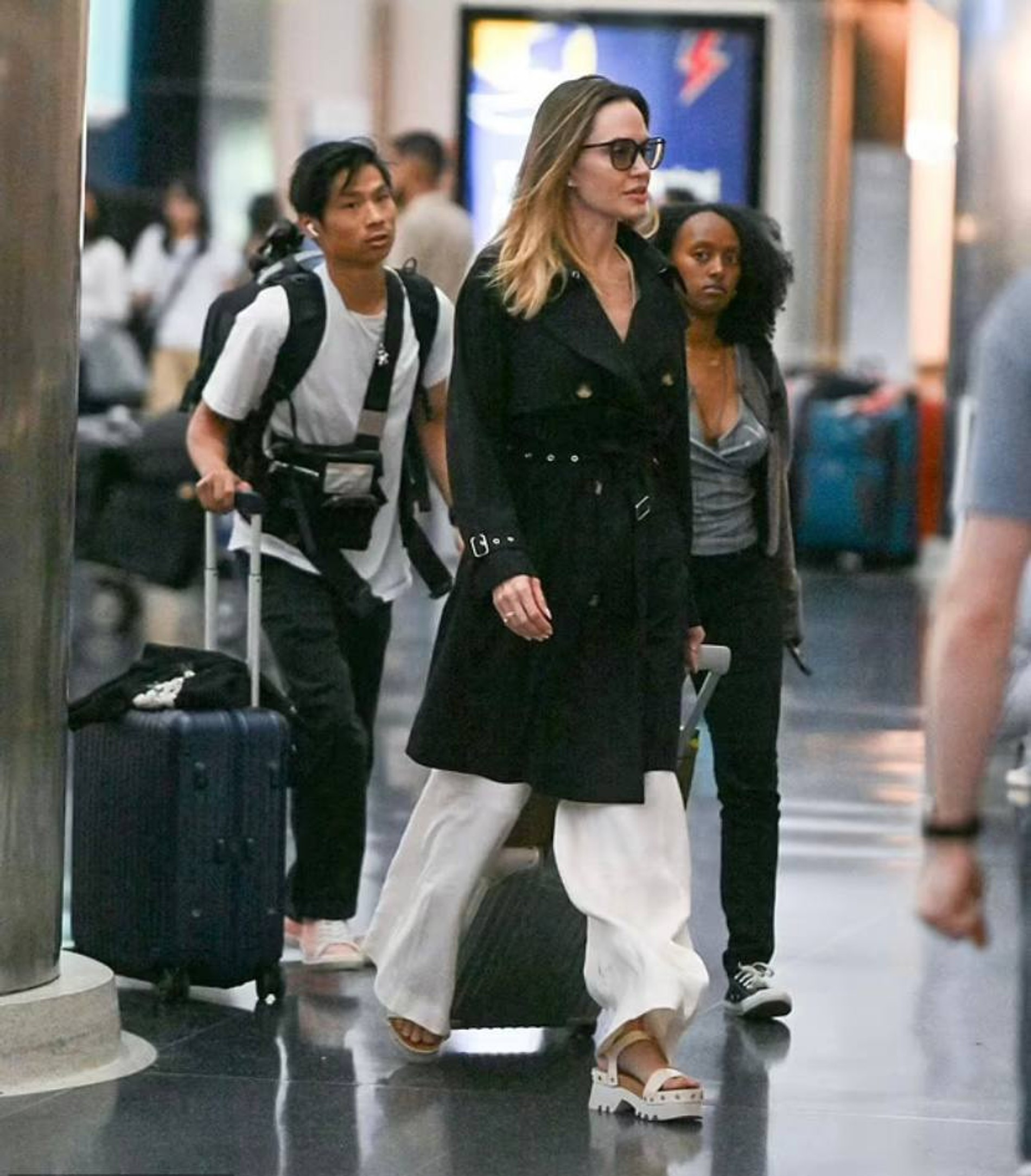 Анджелина Джоли всегда была одной из самых неоднозначных фигур шоу-бизнеса — с тех незапамятных времен, когда прилюдно целовала в губы родного брата и носила пузырек с кровью мужа на шее. Вот и сейчас звезда вызывает максимально противоречивые реакции пользователей Сети. Причем ей даже не приходится для этого особенно стараться. Никаких эпатажных выходок или сомнительных аксессуаров: 48-летняя актриса просто-напросто попала в объективы папарацци в аэропорту имени Джона Кеннеди в Нью-Йорке в компании своих приемных детей — 19-летнего Пакса и 18-летней Захары.