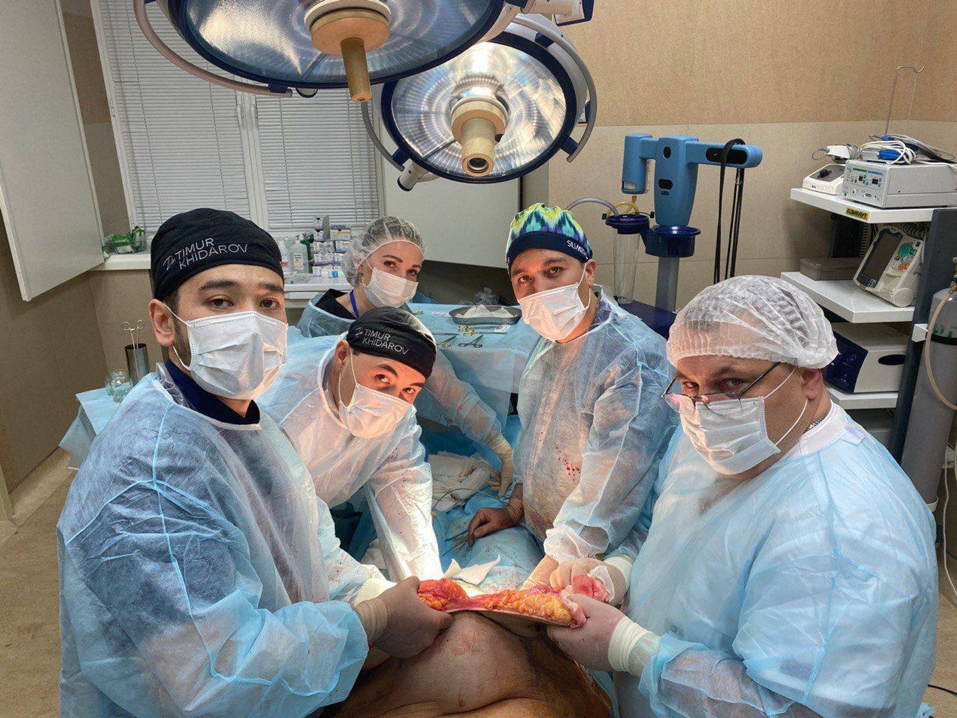 Добровинский предоставил нам эти фотографии. На них можно рассмотреть, что специалисты проводят операцию — абдоминопластику — в перчатках.