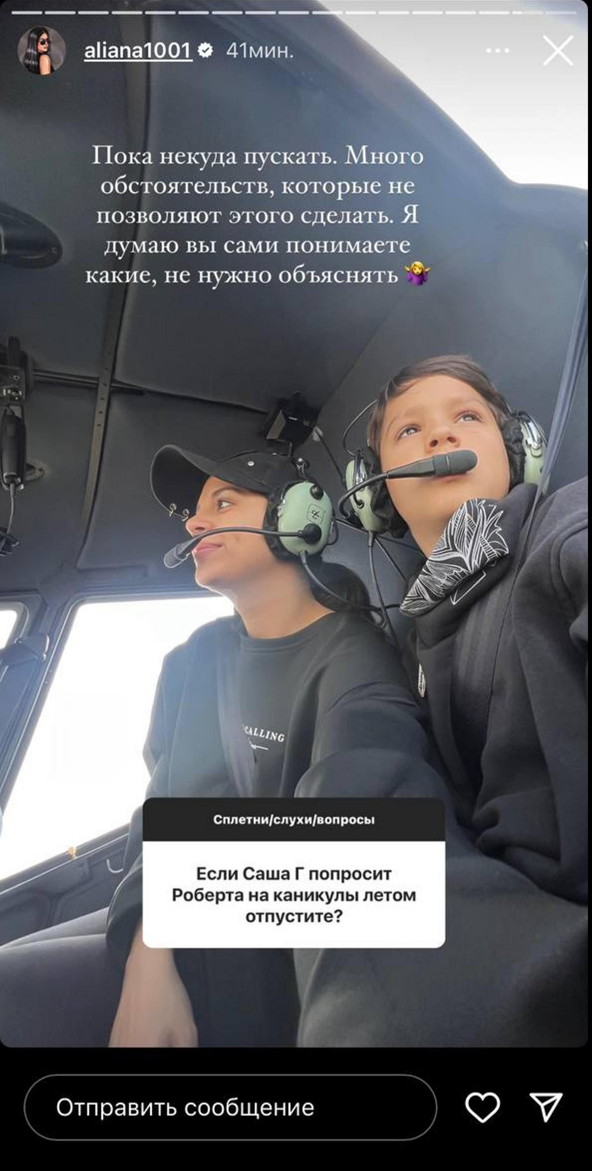 В Инстаграме* звезду «Дома-2» спросили, отпустит ли она Роберта на летние каникулы к папе. Та призналась, что на данный момент обстоятельства складываются не в пользу их совместного времяпрепровождения. Ввиду того что сейчас у Гобозова судебные разбирательства, а вдобавок всей его семье угрожают едва ли не расправой (об этом Алиана говорила прежде), она переживает за безопасность Роберта. «Пока некуда пускать. Много обстоятельств, которые не позволяют этого сделать. Я думаю, вы сами понимаете, какие, не нужно объяснять», — высказалась Устиненко.