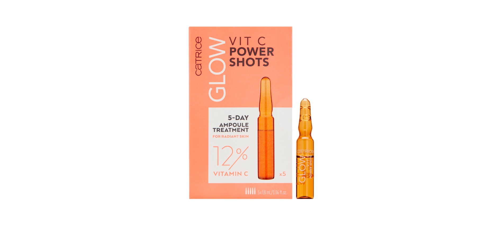 Ампульный уход за кожей хорош своей эффективностью: в формулах используют высокоактивные компоненты, которые за счет герметичной упаковки (а это крайне важно для витамина С) надолго сохраняют свои функции. В бьюти-шот от бренда Catrice добавили 12% витамина вместе с гиалуроновой кислотой и пантенолом, которые моментально приведут кожу в чувство. Результат: естественное сияние и увлажнение.