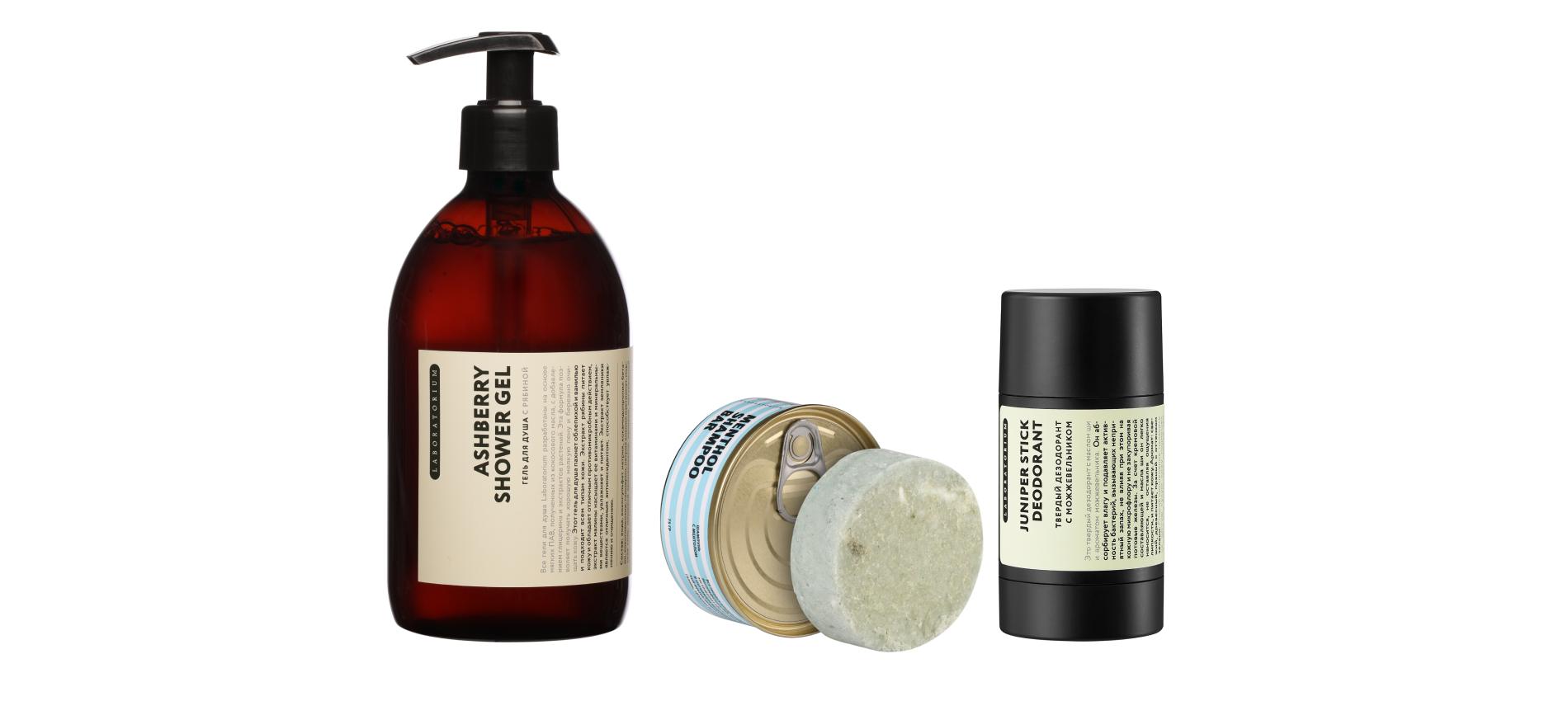 Для частых посетителей спортзала — самое оно, ничего лишнего. Компактный и удобный твердый шампунь, гель для душа и дезодорант с интересными отдушками.