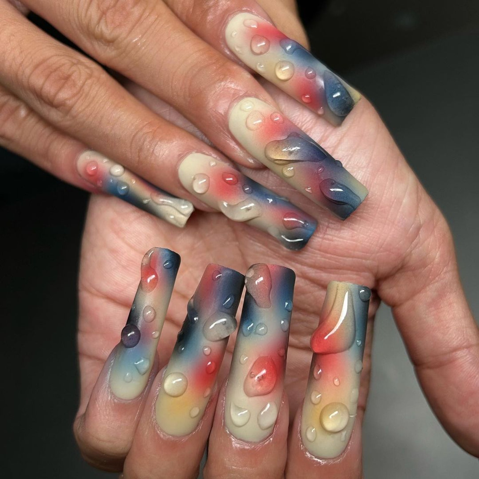 Кто сказал, что минималистичный дизайн не может привлекать любопытные взгляды? Один из набирающих обороты трендов — крупные прозрачные капли. Как будто на классическом маникюре остались брызги после плавания в бассейне. Идеальный вариант, чтобы дождаться отпуска, не правда ли?