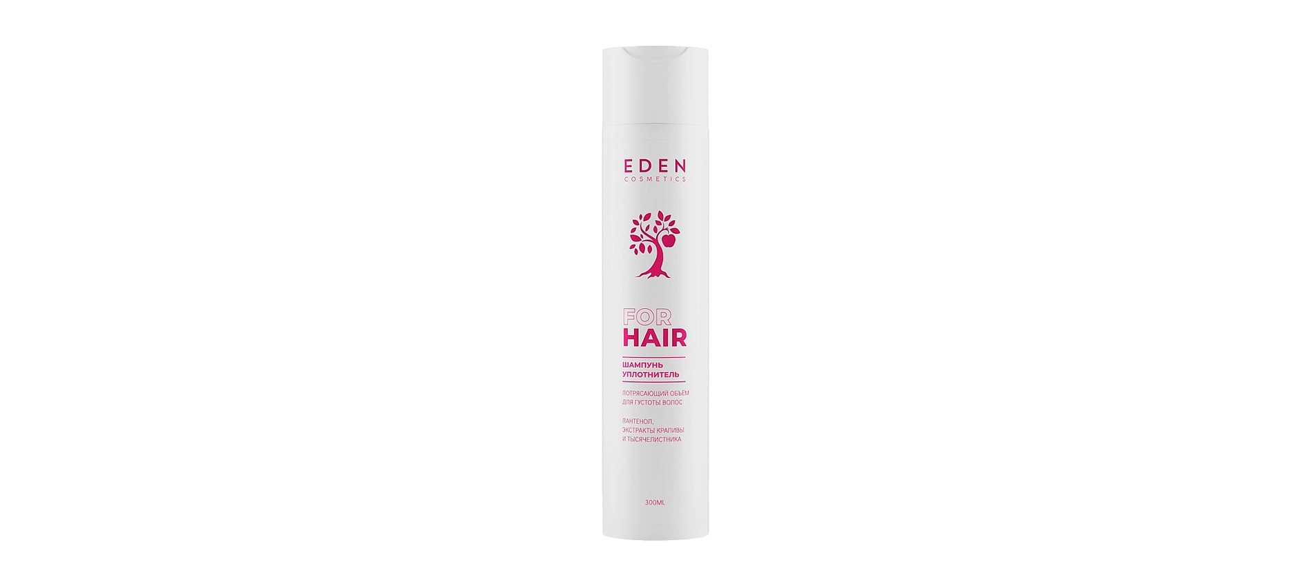 Для восстановления и укрепления волос в шампуне Eden используют натуральные компоненты наряду с пантенолом. Такой состав уплотняет каждый волос, с помощью чего формируется объем.