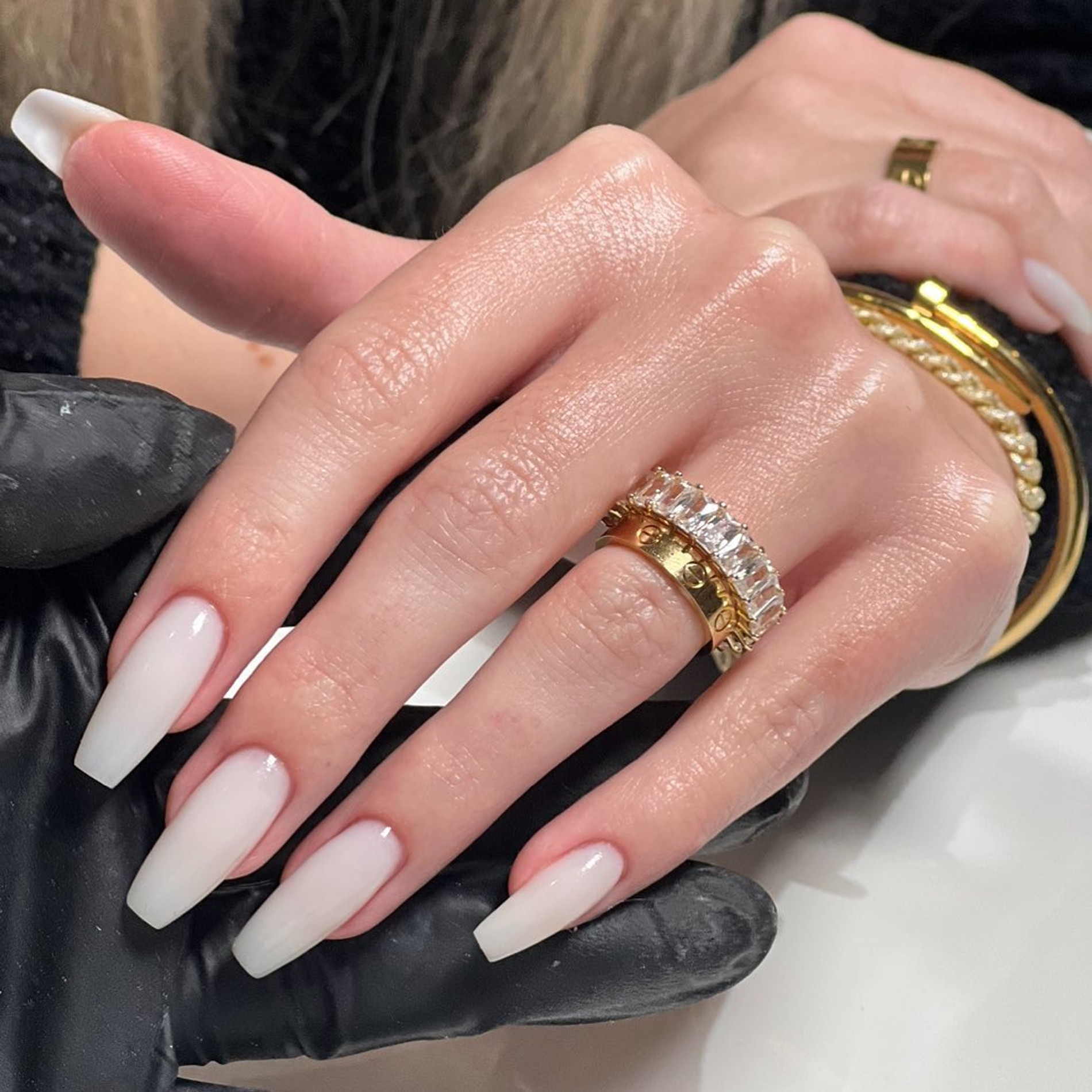 Белый для «тихой роскоши» не годится — слишком уж отчаянно белоснежный маникюр привлекает внимание. Востребованы приглушенные оттенки — словно вода с молоком. Ногти выглядят изумительно, хотя этот дизайн потребует минимум времени. Осталось подобрать идеальный молочный оттенок.