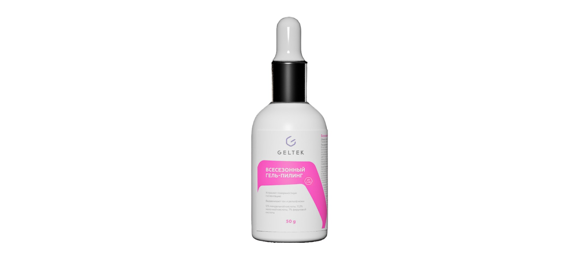 Действие кислотного пилинга Geltek устроено таким образом, что при нанесении на кожу отшелушивающие компоненты начинают работать постепенно. Это позволяет использовать гель на чувствительной коже и добиться равномерного обновления эпидермиса.