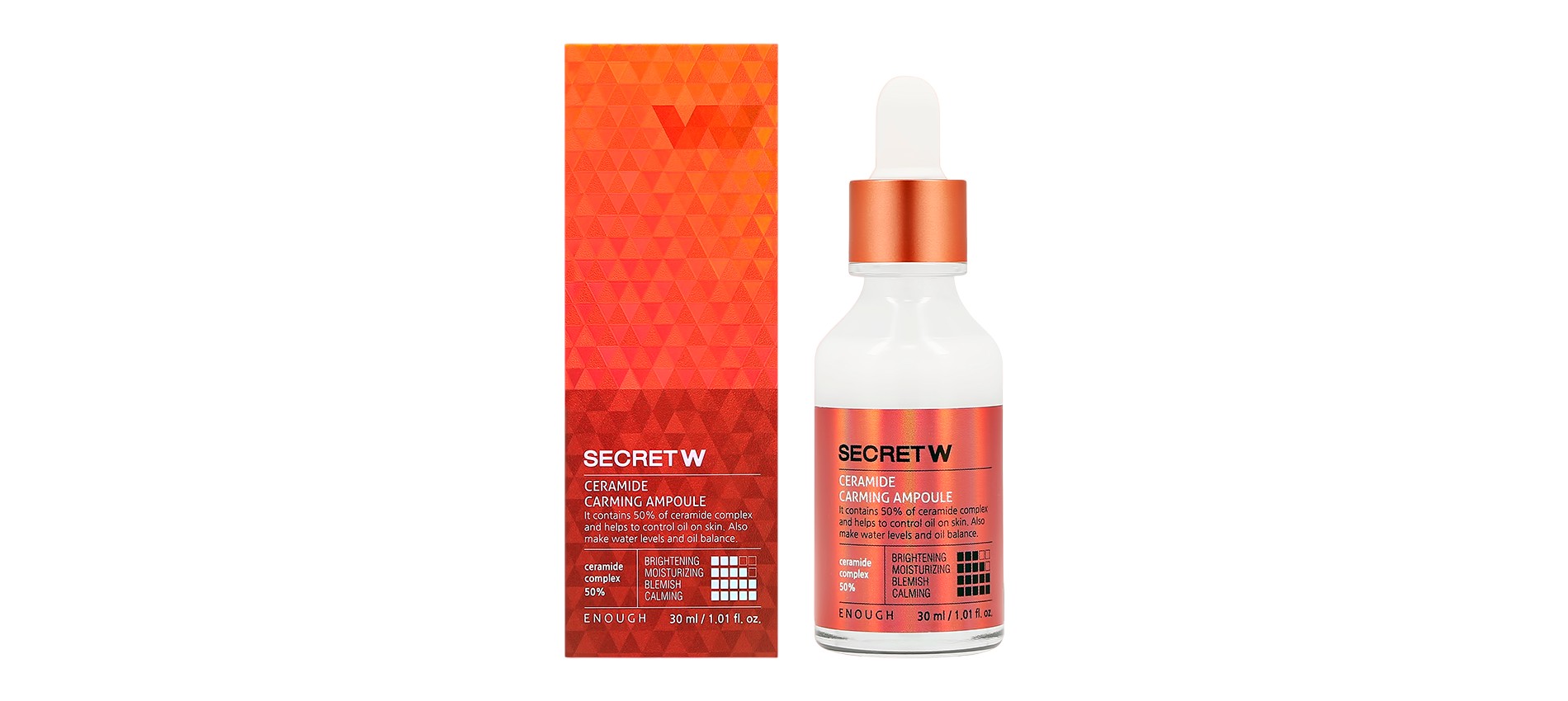 Сыворотка Secret W рассчитана на укрепление и матирование. За первую функцию отвечают церамиды, которые образуют липидную структуру на поверхности кожи, увлажняют и защищают от негативного внешнего воздействия. Матирующий эффект — зона ответственности полиглутаминовой кислоты. Ее получают в процессе ферментации соевых бобов, а ценят за увлажняющие функции.