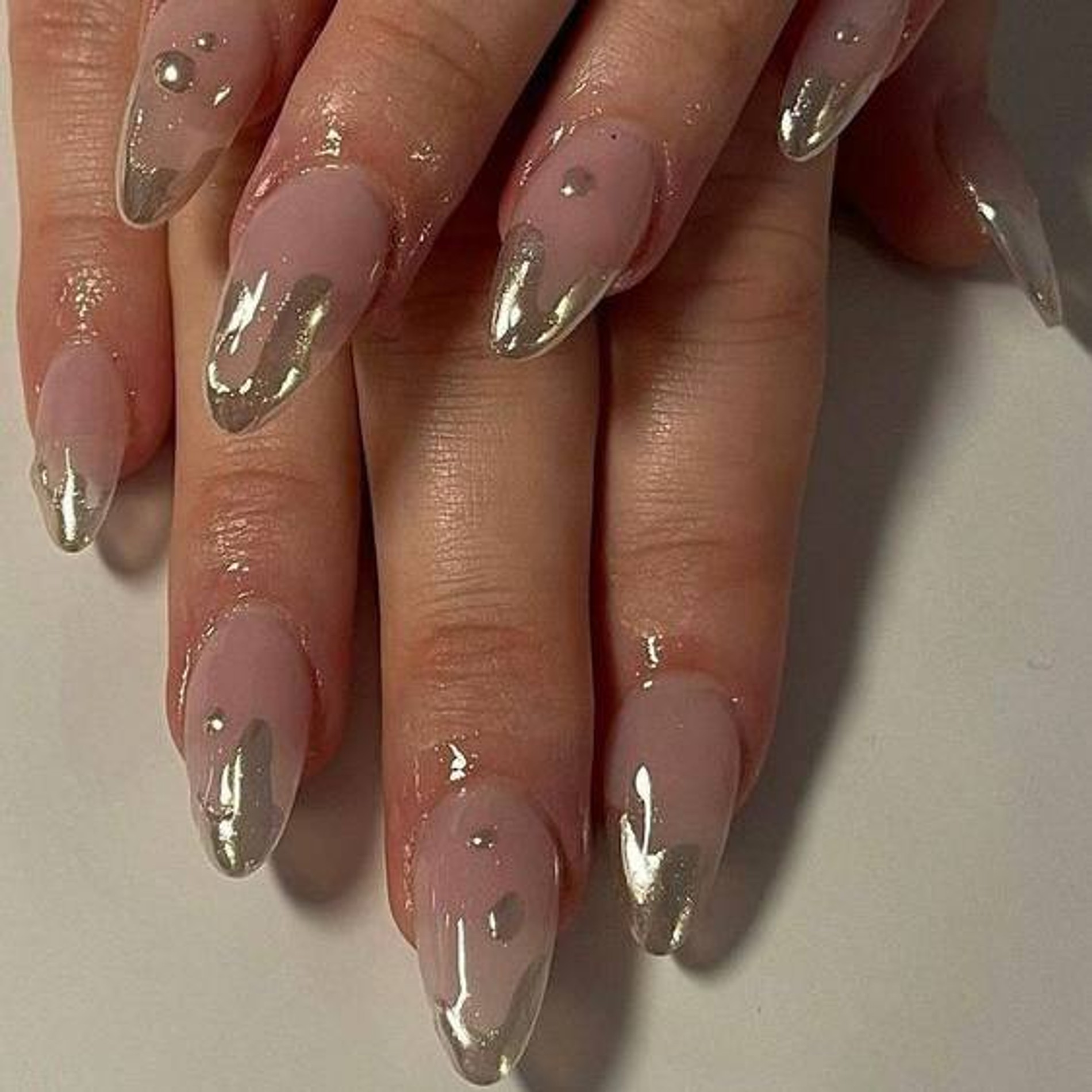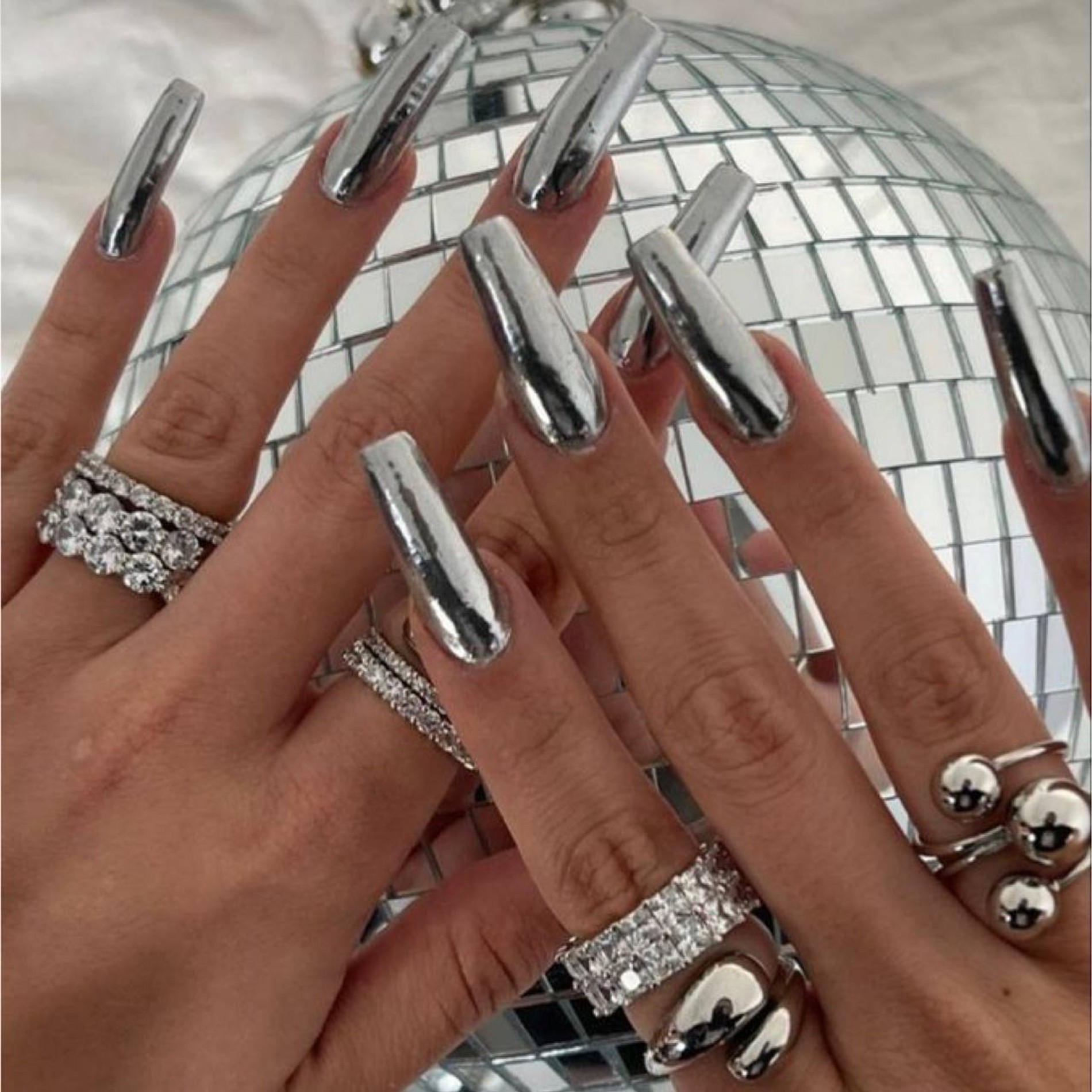 К тому же, по словам Дины, тренд набирает популярность, и картинок с металлическими ногтями на том же Pinterest огромное множество. «Подобный маникюр смотрится стильно и эффектно и делается с минимальными усилиями, — считает тиктокерша. — Можно нарисовать френч, создать имитацию растекающихся капель или покрыть ногти "хромом" полностью». Ну и по традиции небольшая подборка вариаций от Дины. Берите на заметку!