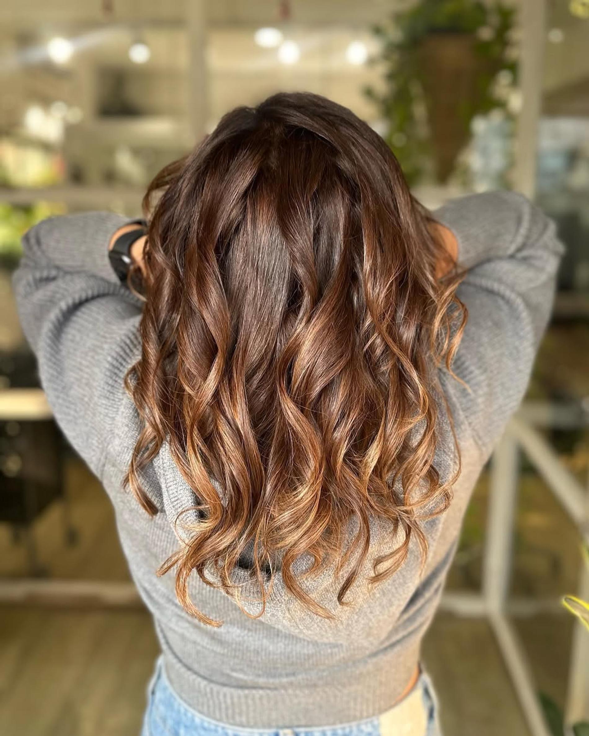 Альтернативное название коричного окрашивания — «дорогая брюнетка». Суть в том, что окрашенные пряди едва отличаются от фона: задача мастера — добиться тонких, естественных бликов, которые подчеркнут красоту темно-каштановых волос. Среди звезд такое носили Хейли Бибер и Синди Кроуфорд. Этот модный тон подходит к широкому спектру оттенков кожи и глаз, но особенно эффектно смотрится с оливковым или любым теплым цветом кожи.