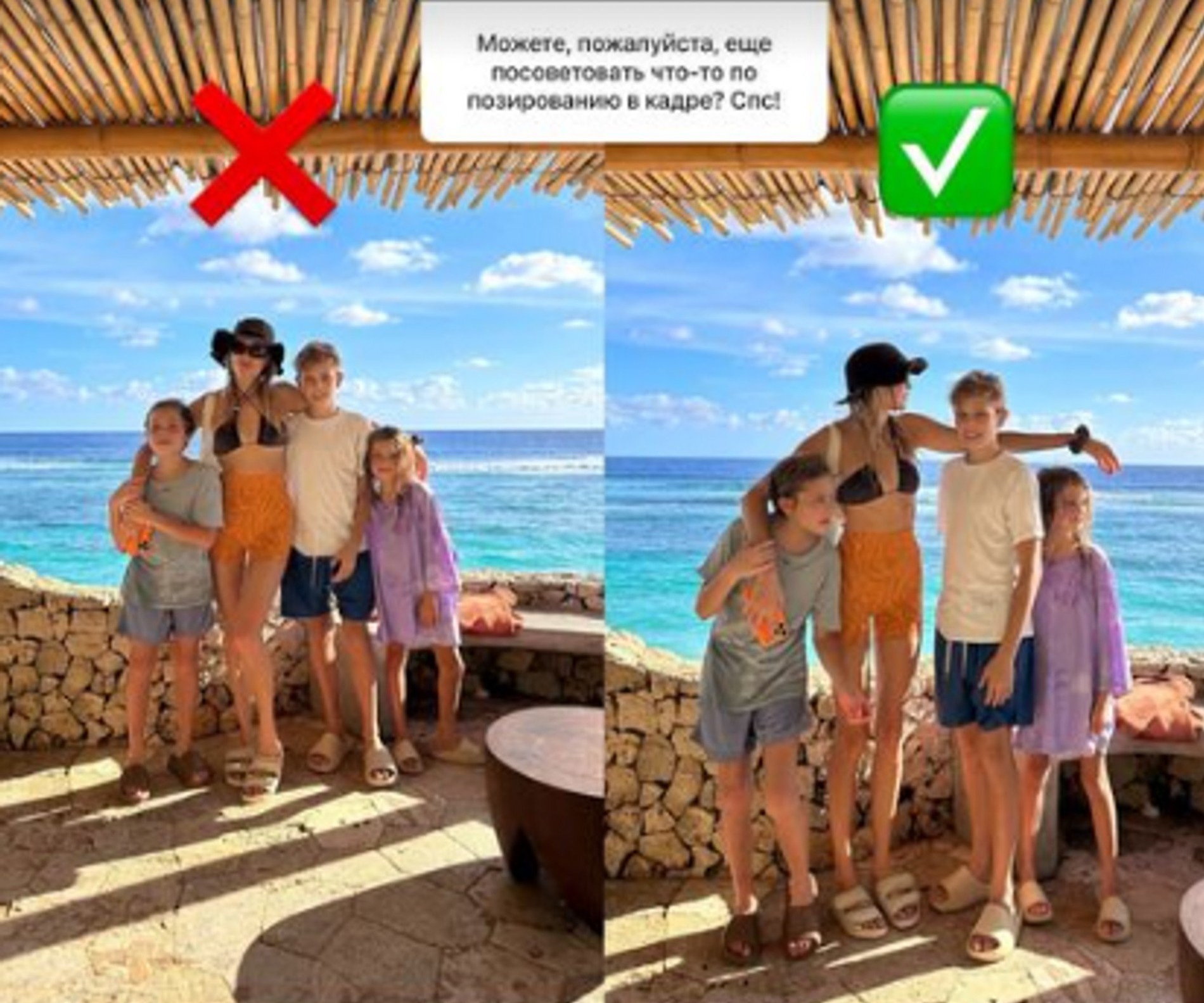 «Есть очень простое правило: захватываете в кадр меньше земли или пола. Оптимально, если край обуви на фото отстает от края фотографии аккурат на размер ступни. Сравните: когда в кадре много земли, мы выглядим коротконогими и коренастыми. На втором фото соблюдено правило, и мы выглядим стройными и длинными. Никакого фотошопа и вытянутых конечностей», — раскрывает секреты Перминова. Также она делает акцент на том, что камеру нужно держать непременно ровно, не наклонять и не снимать сверху — так пропорции тела сохраняются естественными.