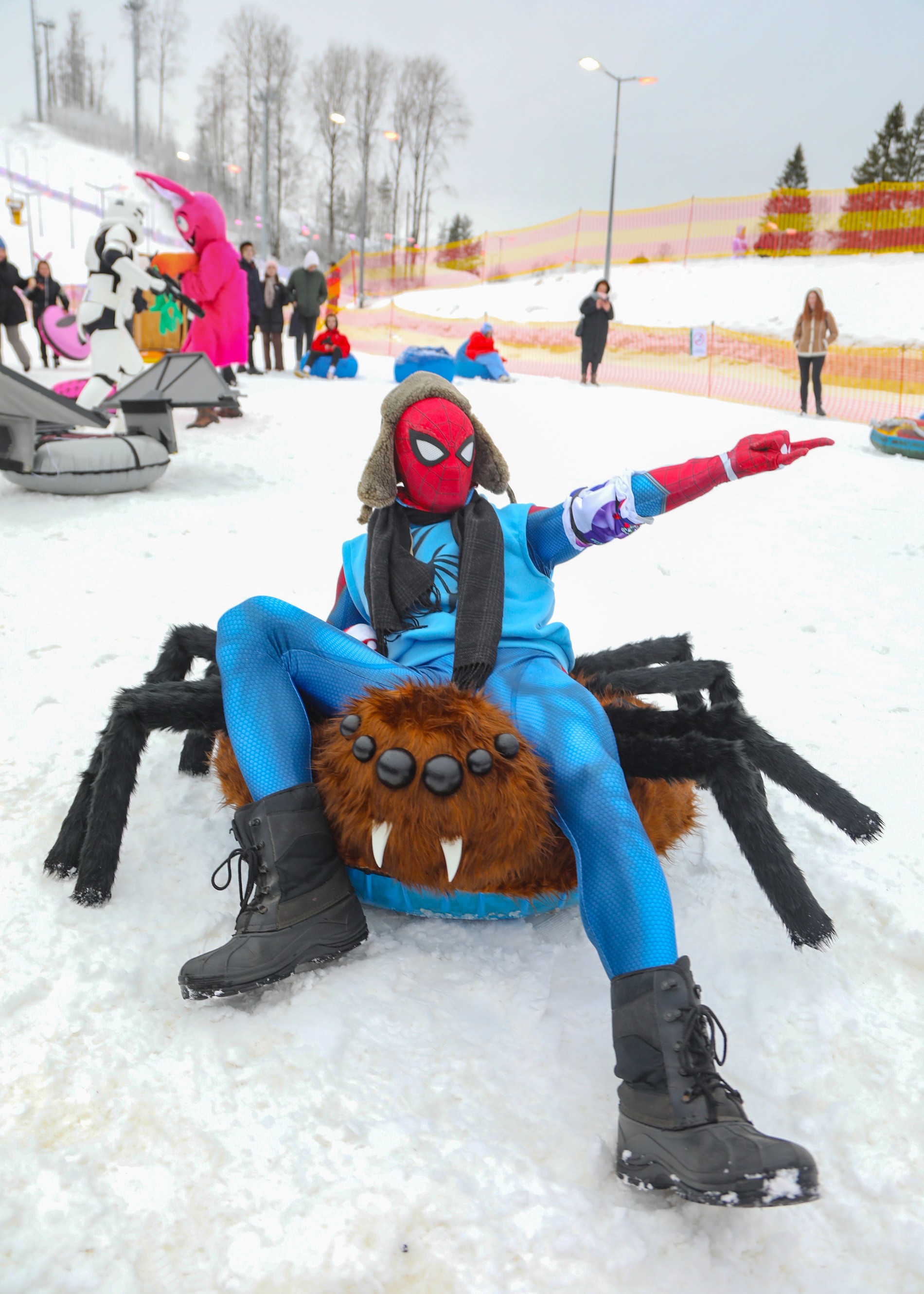 Вы когда-нибудь видели, как Человек-паук спускается на тюбинге со снежной горки, а следом за ним едут Чебурашка, Шрэк и (внезапно!) баня на колесах? Нет, наша редакция не сошла с ума, а просто побывала на первом зимнем студенческом фестивале «Большие горки», который прошел сегодня в «Охта парке» в Санкт-Петербурге. Организатором выступил телеграм-канал Mash при поддержке «Mash на Мойке». Как заверяют инициаторы гонок на тюбингах, отныне фестиваль будет проходить ежегодно.
