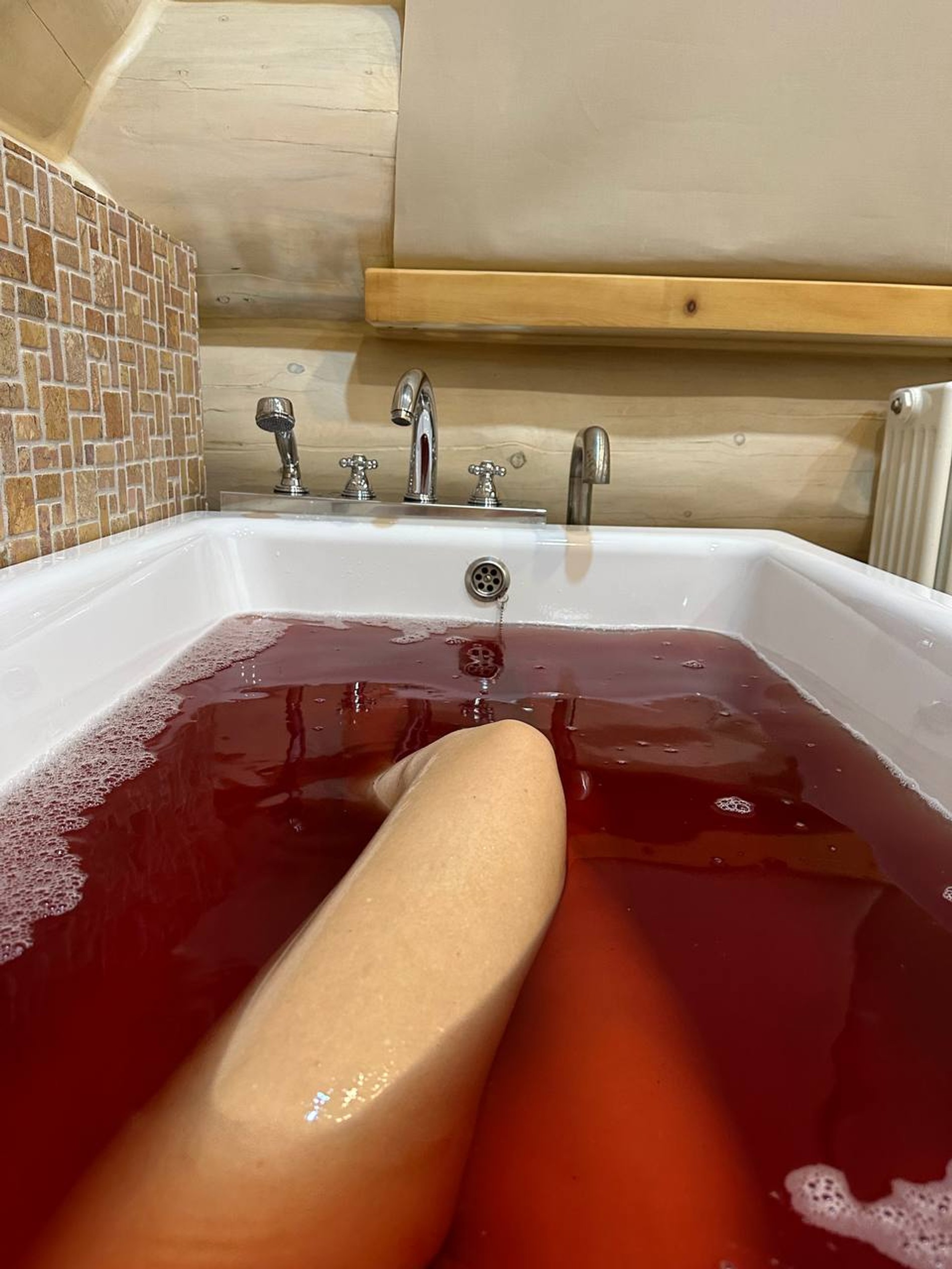Кадры подготовки и самого купания журналистка опубликовала в личном блоге, видимо, решив не лишать своих подписчиков удовольствия понаблюдать за действом. Чтобы не ранить особенно чувствительных, сразу предупредим: красное вещество, растворенное в ванне, — не кровь, а экстракт из рогов марала (оленя). Процедура считается крайне полезной, но выглядит уж очень жутко.