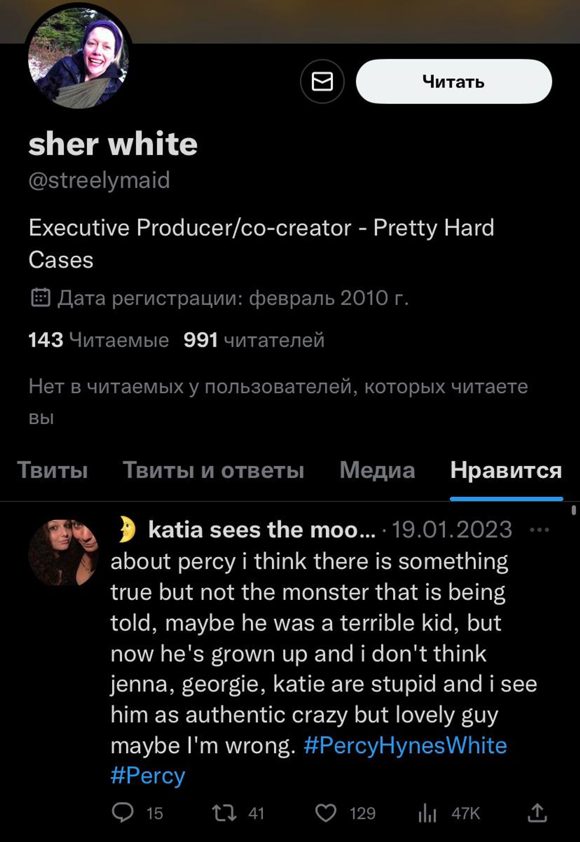 В январе 2023 года звезду сериала «Уэнсдей» Перси Хайнс Уайта обвинили в изнасилованиях. Несколько человек рассказали, что в старшей школе молодой человек домогался и насиловал девушек, отправлял знакомым непрошеные дикпики и вообще вел себя крайне непорядочно. Увы, имеются фото, скриншоты переписок и воспоминания общих знакомых, подтверждающие противозаконные действия. Пока сам актер хранит молчание после обвинений, его мама лайкает вот такие твиты в защиту актера.