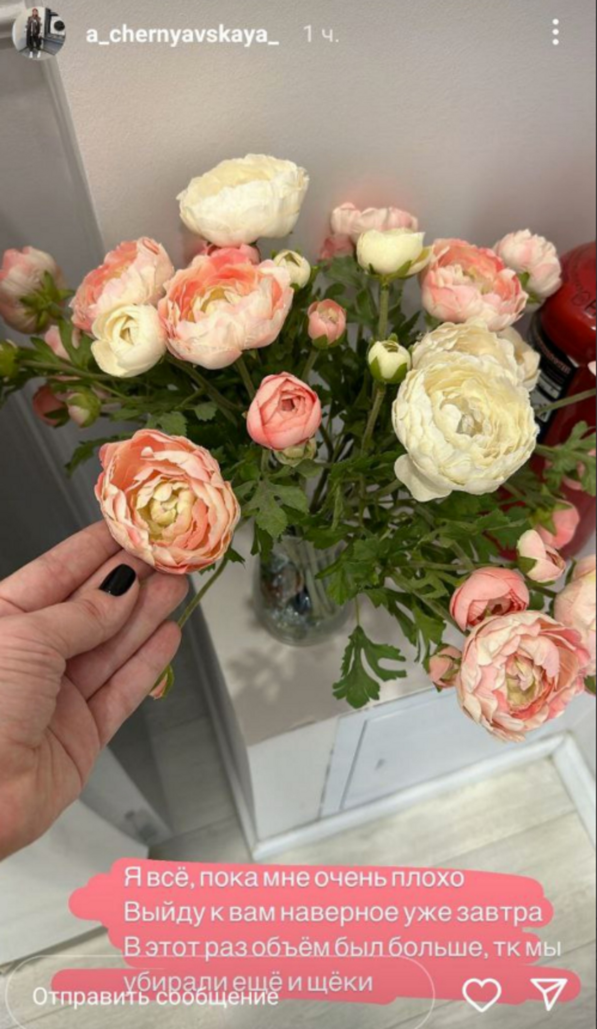 После операции Саша написала, что чувствует себя очень плохо и на связь выйдет завтра. К тому же она уточнила, что в этот раз объем работы у хирурга был больше, чем в августе прошлого года, так как она «убирала еще и щеки».