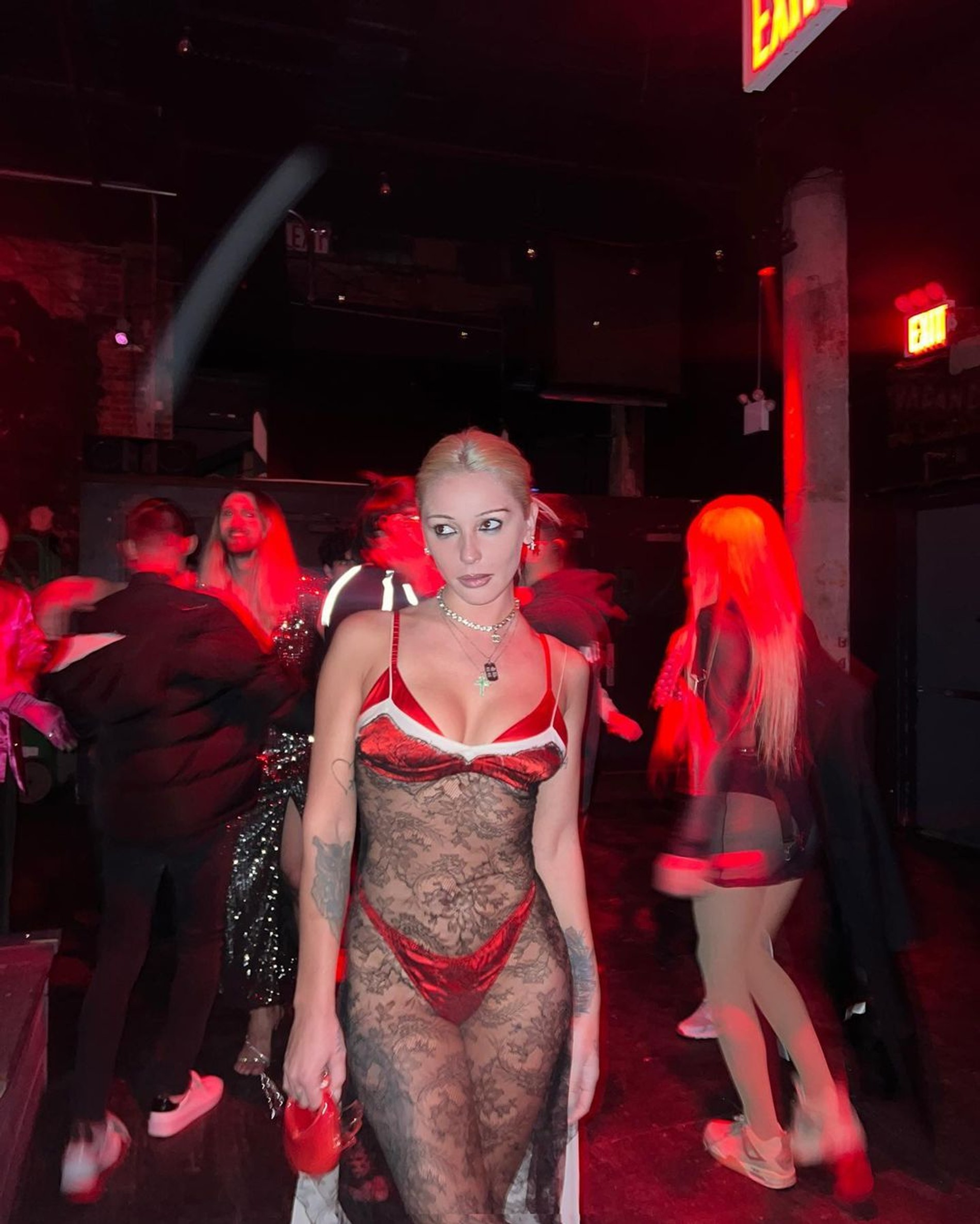 На День всех влюбленных Настя Ивлеева укатила в Нью-Йорк. Но с романтикой, похоже, там не очень задалось. Отмечать праздник блогерша отправилась в ночной клуб. Наряд выбрала соответствующий, по принципу: чем меньше одежды, тем лучше. 31-летняя звезда предстала в атласном нижнем белье красного цвета и «голом» платье из тончайшего кружева. Ну и алая микроскопическая сумка — для баланса акцентов. Сама Настя от откровенного образа явно в восторге: она сфотографировалась во всех возможных ракурсах и опубликовала серию снимков в запрещенной сети.