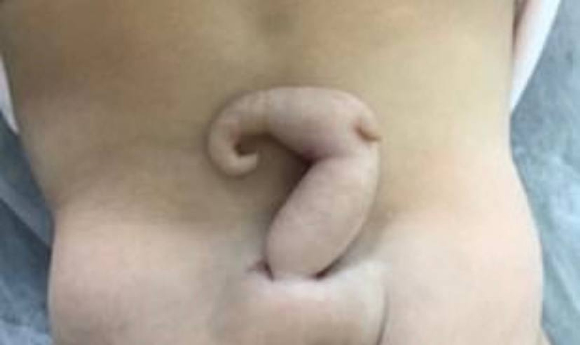 Из пояснично-крестцовой области у ребенка рос 6-сантиметровый хвост, покрытый кожей. Причиной появления отростка, по мнению медиков, стало расщепление позвоночника.