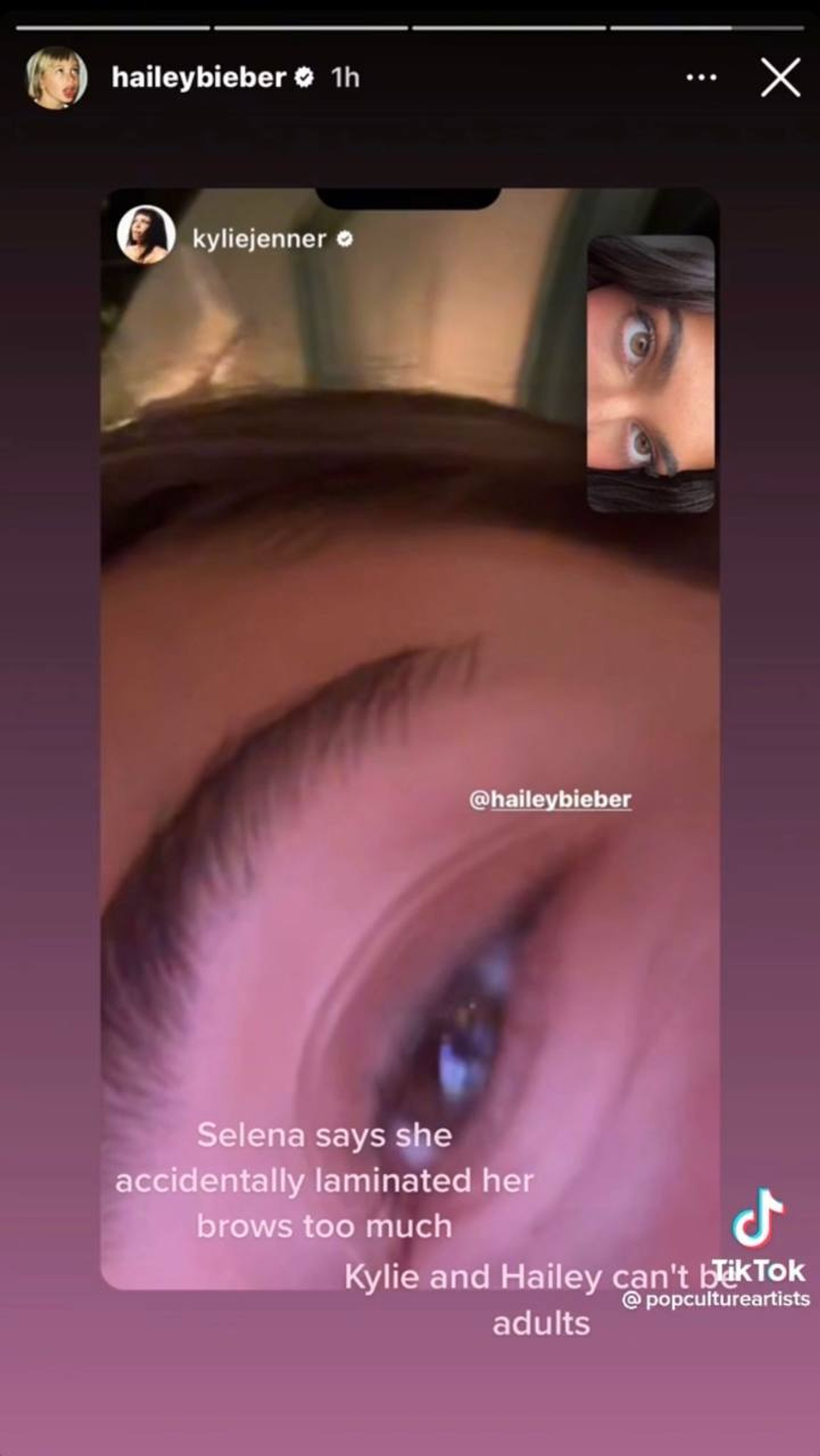 Ничто так не увлекает, как негласные разборки мировых знаменитостей, особенно когда к ним подключаются толпы противоборствующих фанатов. В этот раз в интернет-перепалку оказались вовлечены сразу три громких имени: Селена Гомес, Кайли Дженнер и Хейли Бибер. Началось все с безобидно-шутливого видео певицы, в котором она самоиронично показала подписчикам неудачное ламинирование бровей.