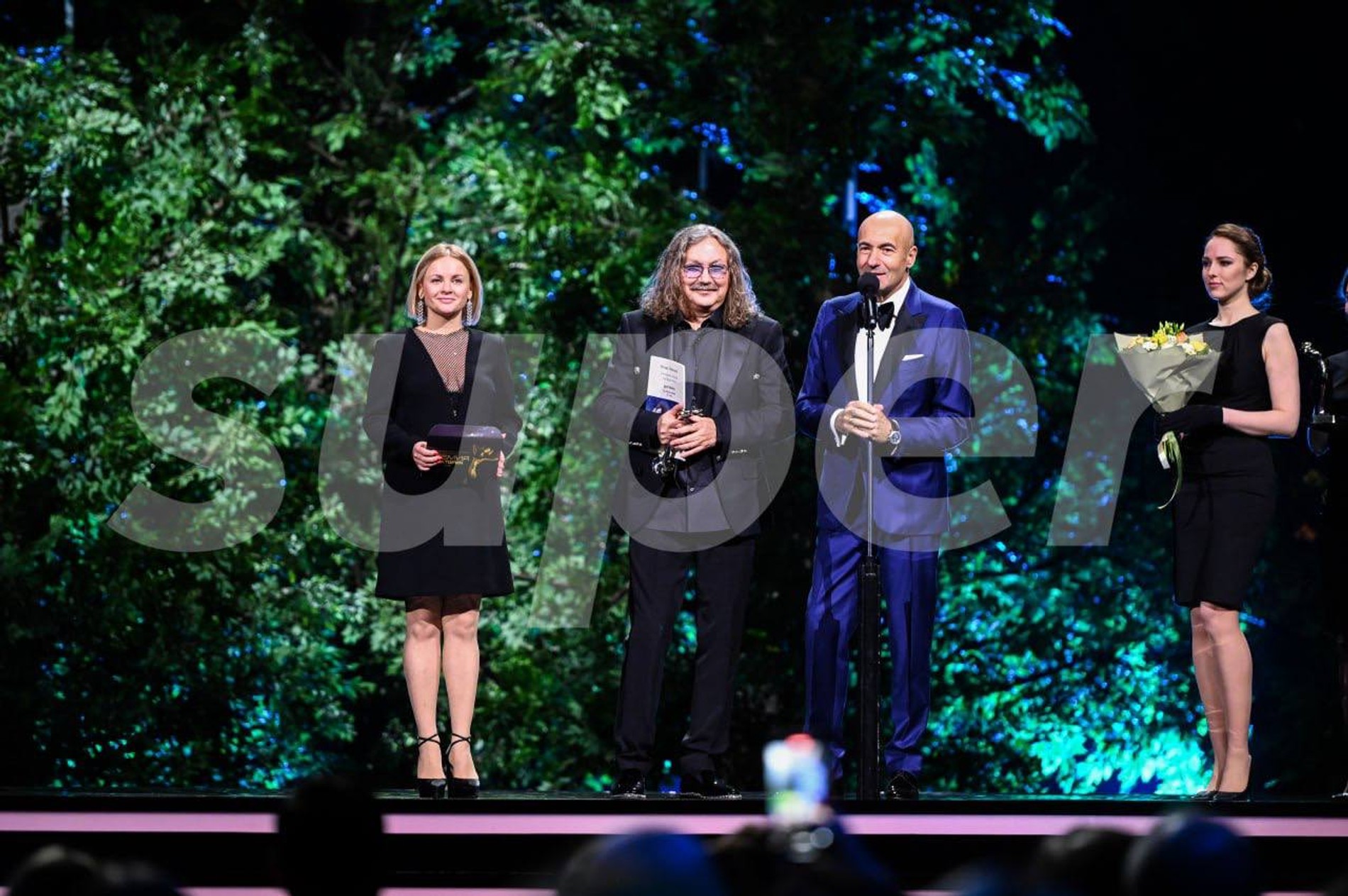 Игорь Николаев с женой Юлией Проскуряковой получает премию «Виктория» Фото: Super