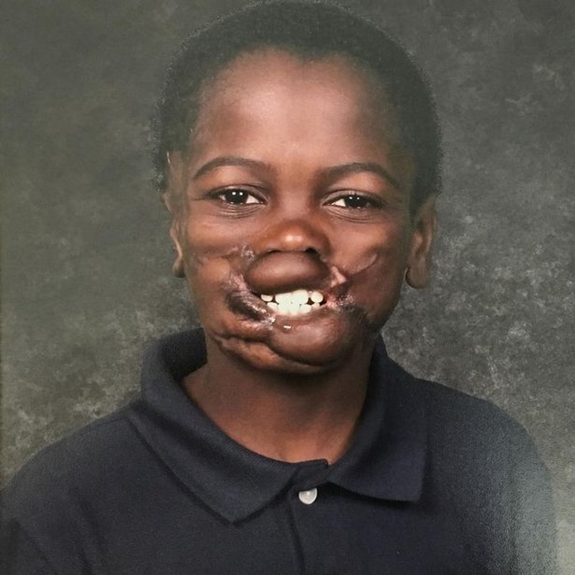 Страшное событие произошло в жизни мальчика, когда ему было всего шесть лет. Как сообщал телеканал CNN, малыш из Конго по имени Дуния Сибомана играл вместе со своим младшим братом у реки, когда на них напала стая разъяренных шимпанзе. Брат Дунии скончался на месте, буквально разорванный на части, а сам мальчик получил ужасные ранения: у него были оторваны верхняя и нижняя губа, палец на руке и часть правого уха. У мальчика также были внутренние повреждения, и, что не менее важно, трагедия сказалась на его психологическом состоянии: Сибомана стал закрытым и одиноким. Вот так зажившее лицо мальчика выглядело до реконструкции.