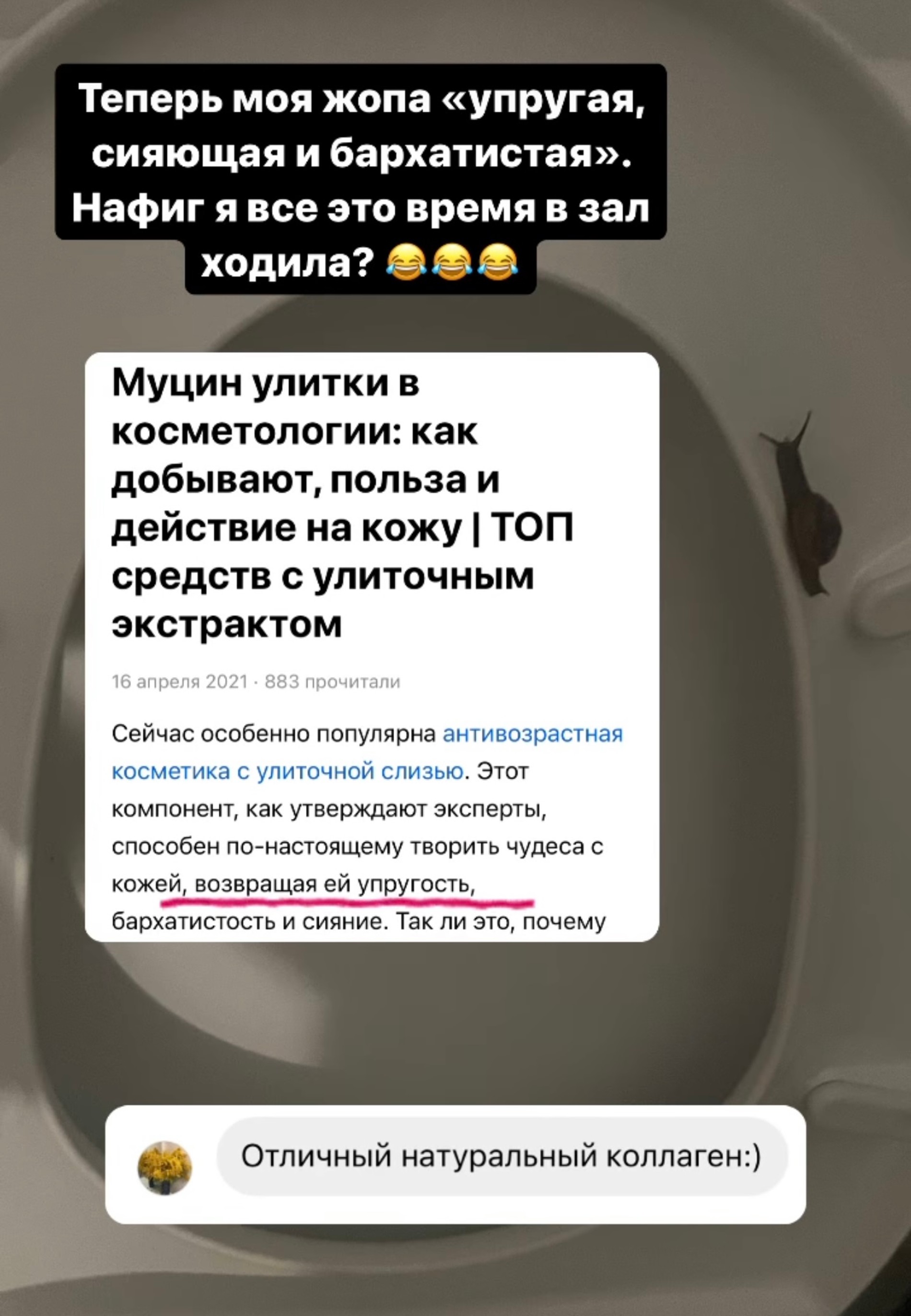 У жизнерадостной певицы что ни день, то приключение и новый повод для сторителлинга в Сети. На это раз, правда, произошла ситуация, действительно заслуживающая всеобщего внимания. Рассказываем: во время похода в туалет на Бали Риту цапнула за пятую точку улитка! Девушка решила немедленно поделиться пережитыми эмоциями с любимыми подписчиками и даже предоставила на всякий случай доказательства случившегося. «Вы ни за что не поверите, какой сюр со мной произошел. Слава богу, у меня есть вещдоки, а так никто бы не поверил, что это возможно», — написала для затравки Дакота.