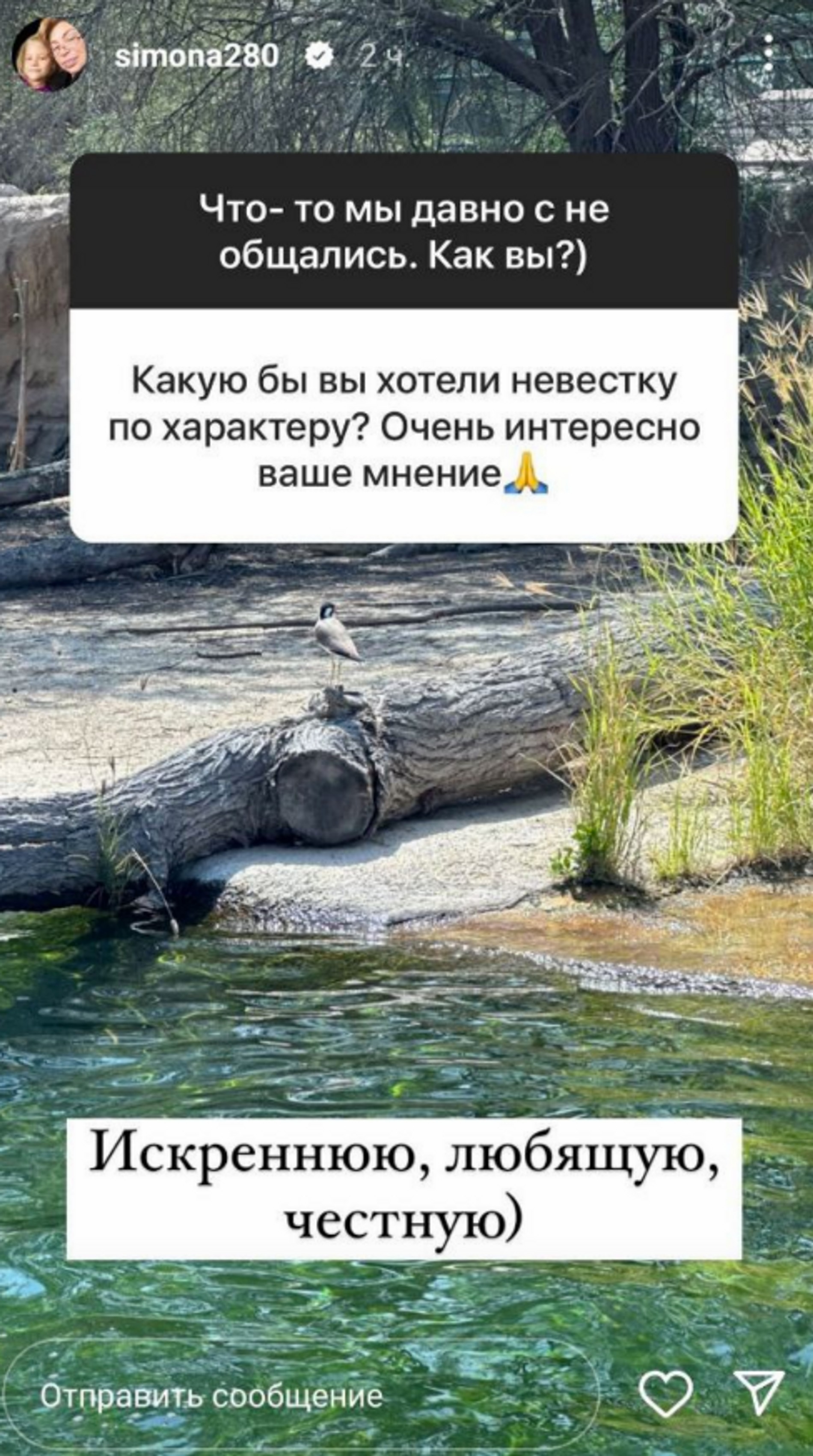 Подписчики мамы Тимати всегда с нетерпением ждут рубрику «Вопрос-ответ». В ней Симона Яковлевна рассказывает о воспитании Алисы (дочери Тимати от модели Алены Шишковой), публикует фотографии из путешествий и просто делится жизненной мудростью. Конечно, частенько у Симоны Яковлевны спрашивают, как она относится к девушкам своего сына. Мама рэпера если и отвечает на подобные вопросы, то всегда крайне деликатно, но при этом честно. Сегодня у Симоны Яковлевны поинтересовались, какой она видит идеальную невестку?
