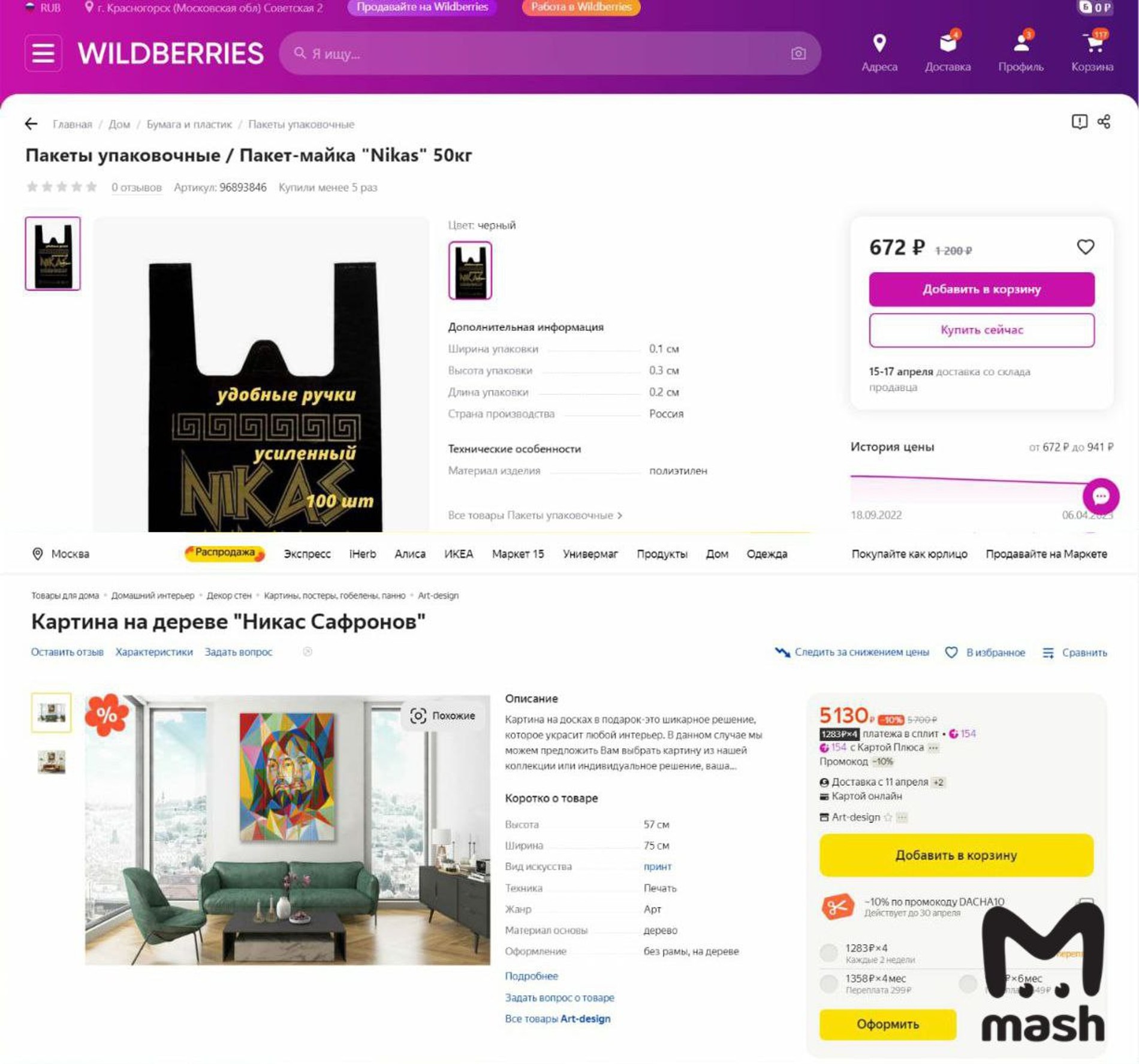 Как пишет телеграм-канал Mash, сейчас на Wildberries можно встретить в большом количестве товары имени художника: например, набор для вышивания крестиком «Никас», пакет-майку «Никас», картину на дереве «Никас». Однако сам автор таких посвящений не оценил, ведь разрешения на использование своего логотипа и образов не давал.