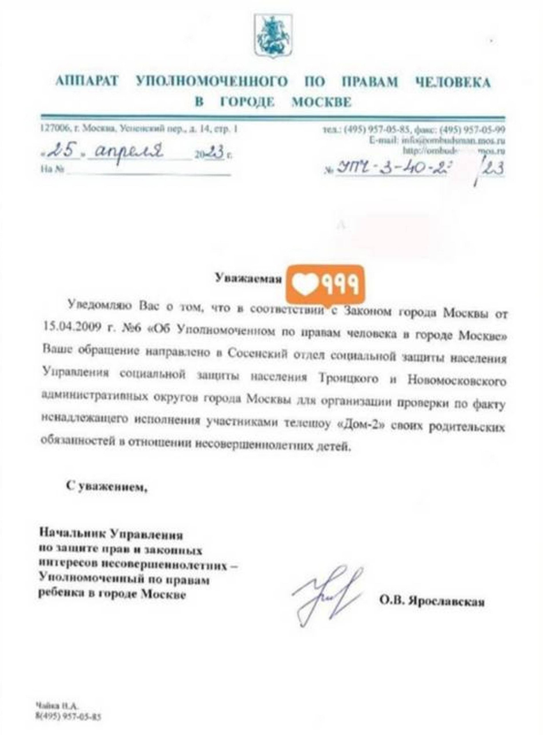 Одну из самых ярких участниц телестройки заподозрили в недобросовестном выполнении родительских обязанностей ее же подписчики. В текущие выходные Саша опубликовала в Инстаграме (запрещен в РФ) сторис из бара с танцами и выпивкой, чем и возмутила фолловеров: дескать, как не стыдно замужней женщине с маленьким ребенком шататься ночью по барам. Блогер ответила, что у них с мужем Иосифом все поровну, в том числе тусовки: сегодня она, завтра он. Однако, похоже, ее слова убедили не всех. Некая О. В. Ярославская обратилась в органы опеки и попечительства с просьбой проверить семейство Черно. Скрин заявления Саша выложила в своем Telegram-канале.