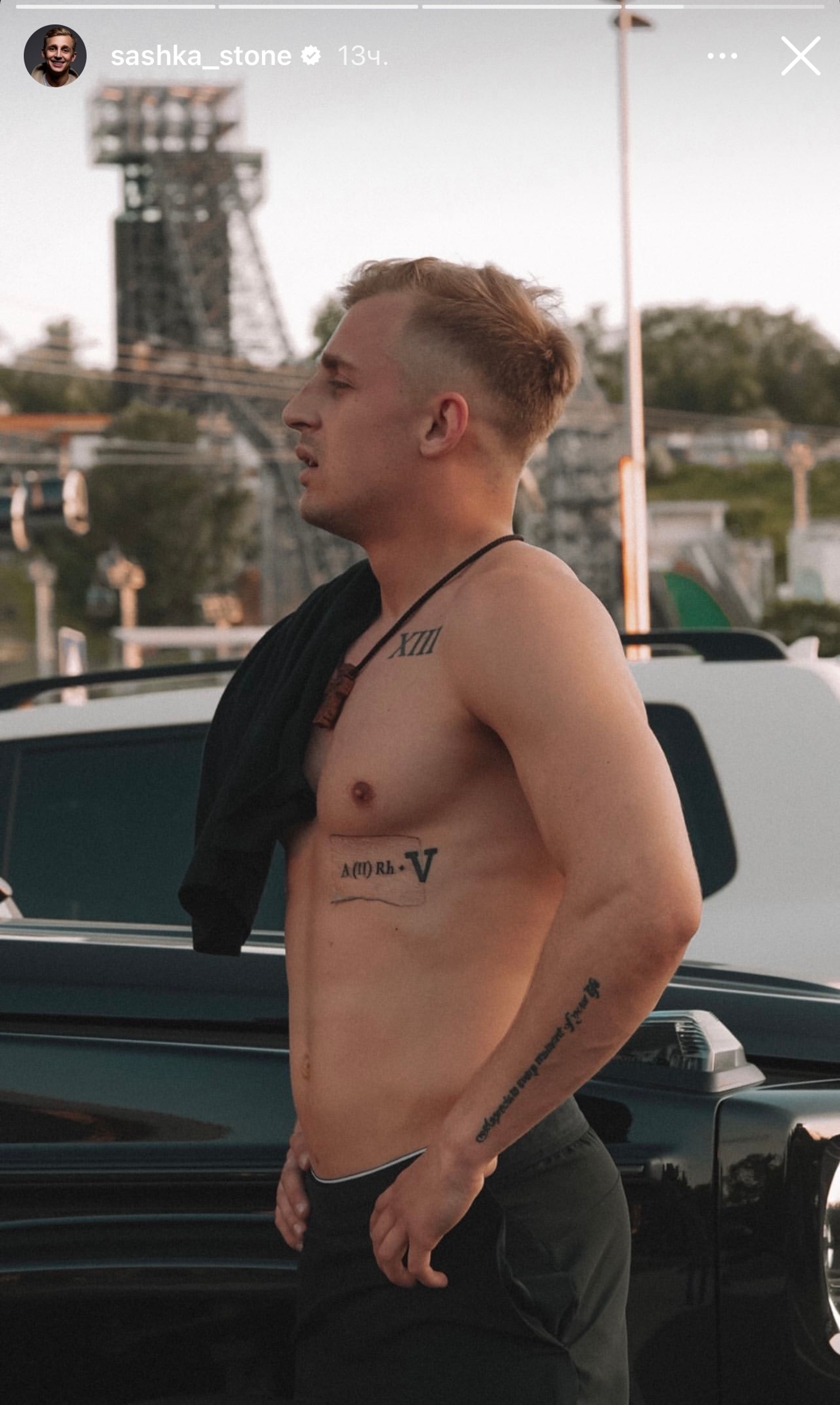 Однако Стоун, похоже, решил не действовать так радикально и пока ограничился небольшими изменениями. На новом снимке блогер предстал с обнаженным торсом и продемонстрировал результат своего недавнего похода к тату-мастеру. Оказалось, что теперь рядом с буквой V красуется еще и надпись A(II)Rh+, которая обозначает вторую группу крови с положительным резус-фактором.