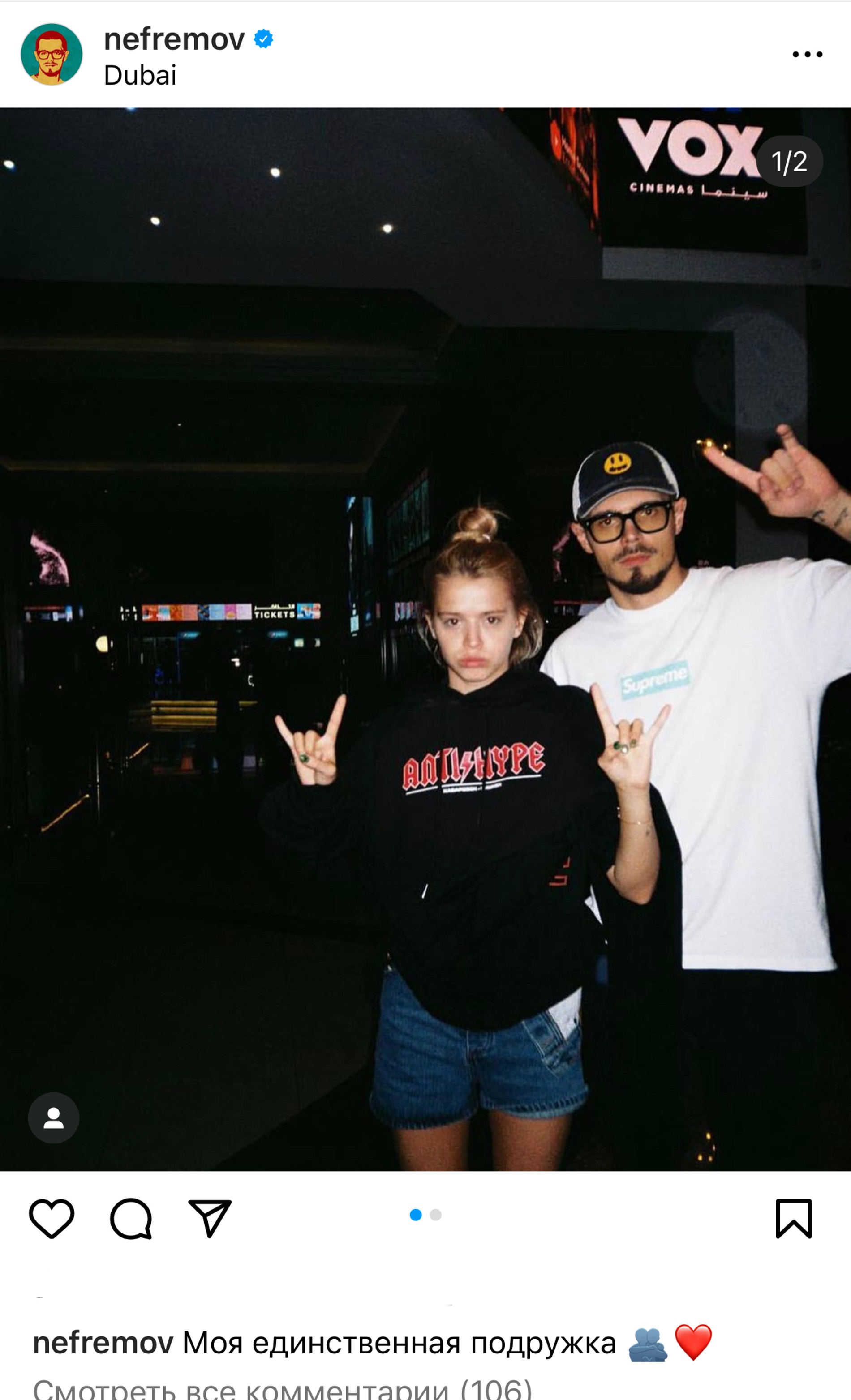 Не путаем спутника Дины с актером Никитой Ефремовым: речь про 24-летнего реселлера брендовых кроссовок. Однако спутник Дины может похвастаться дружбой со всем шоу-бизнесом и большим спросом на товар среди звезд. Единственной подружкой Никита в своих соцсетях называет Юлю Гаврилину, так что, возможно, с Диной его связывает вовсе не дружба.