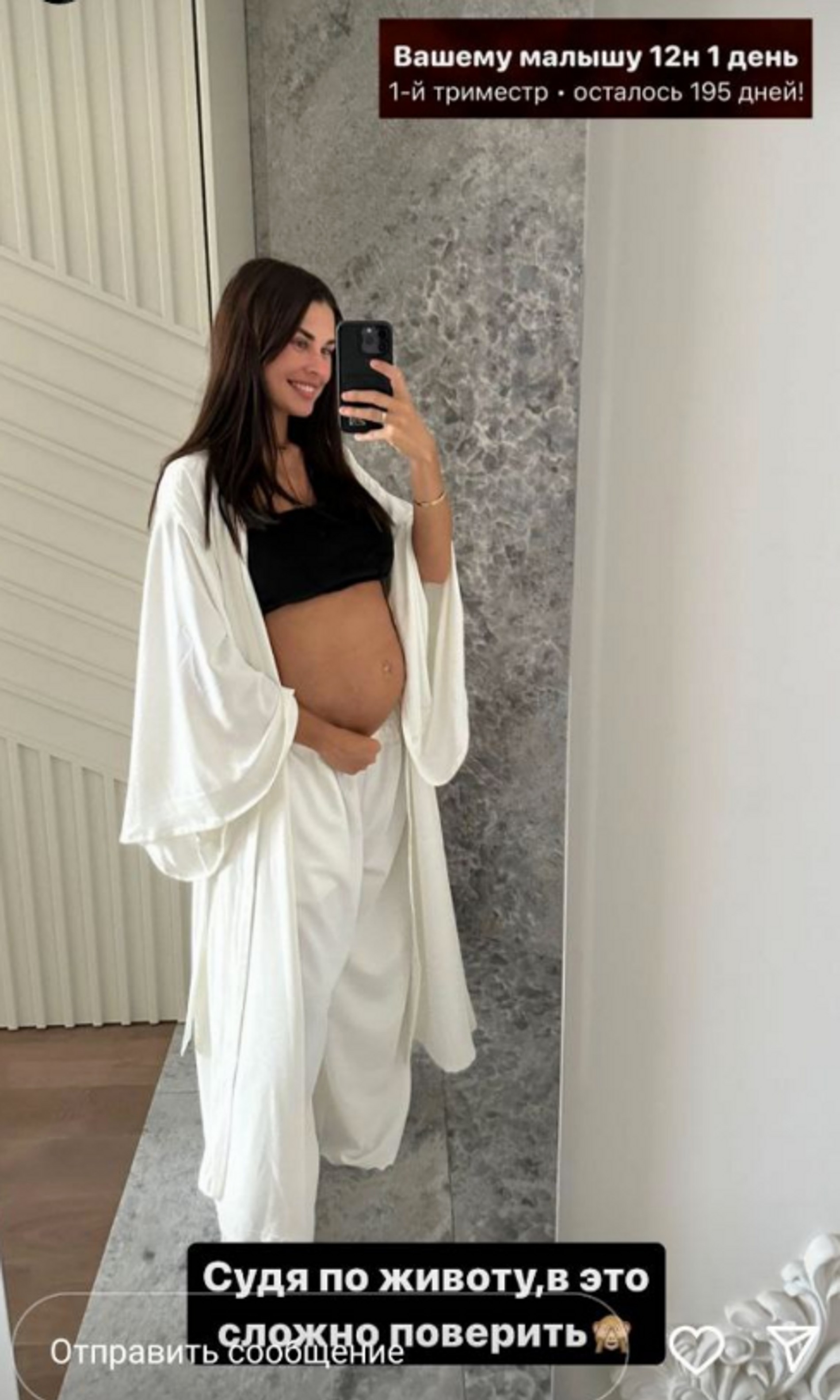 На днях Ирина рассказала о том, что беременность уже сказывается на ее эмоциональном состоянии: она стала очень чувствительной. Кроме того, девушка показала, как сейчас выглядит ее живот. Как оказалось: несмотря на небольшой срок, живот уже заметно округлился. «12 недель и 1 день. Но, глядя на живот, в это сложно поверить», — подписала фото блогерша.