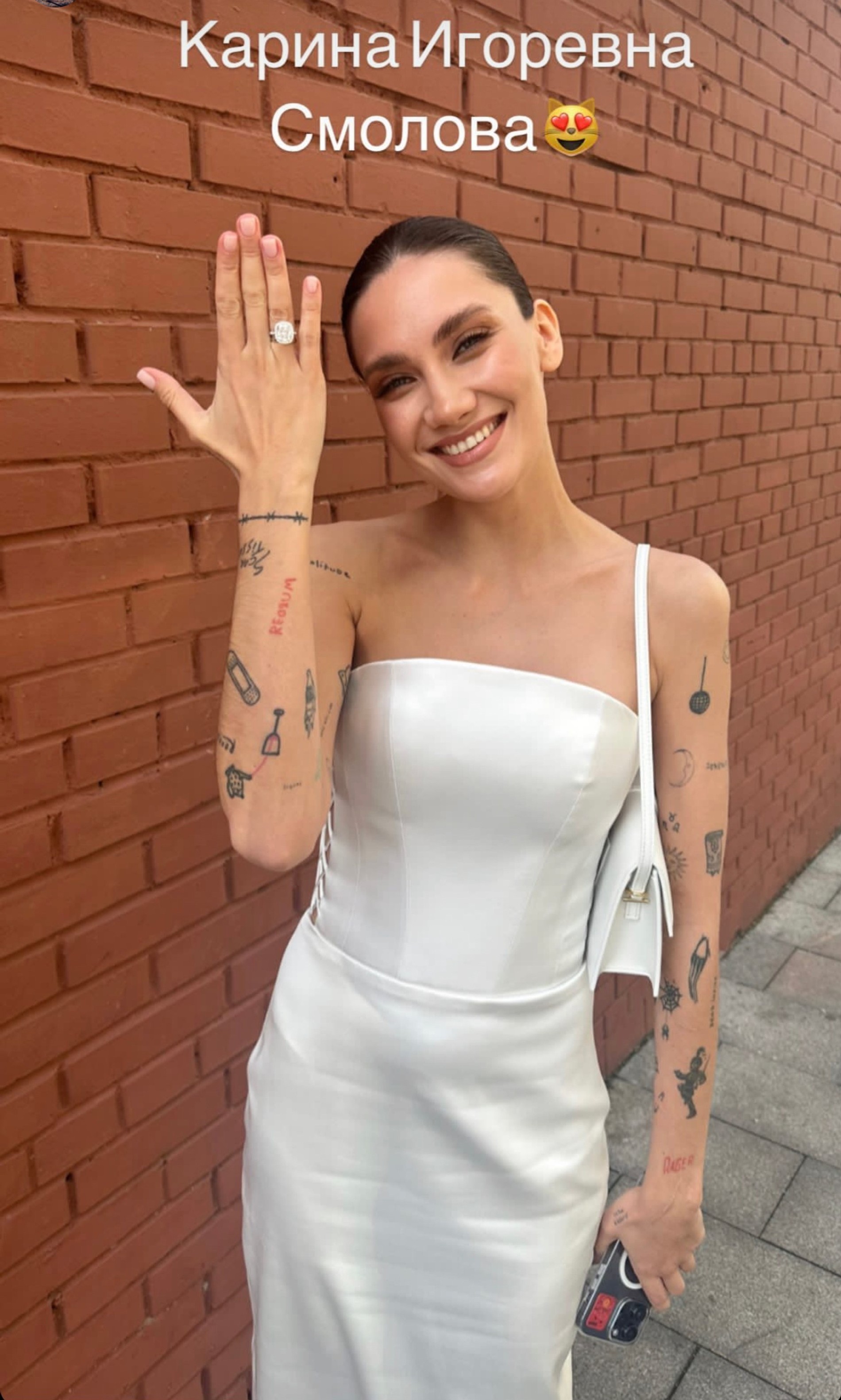 Форвард «Динамо» проходил в холостяках недолго. Разговоры о его романтической связи с Кариной Истоминой начались, когда та появилась на дне рождения Федора Смолова в тесном семейном кругу, а затем опубликовала их совместное фото из ресторана. Не успели мы осознать всю серьезность происходящего, как диджей засветила кольцо на том самом пальце. Признаемся, в их помолвку верилось с трудом, но и в этот раз шестое чувство нас не подвело. Сегодня футболист и модель поженились, о чем оба сообщили многоговорящими снимками в блогах. Вот что значит официально заявить о своих отношениях!