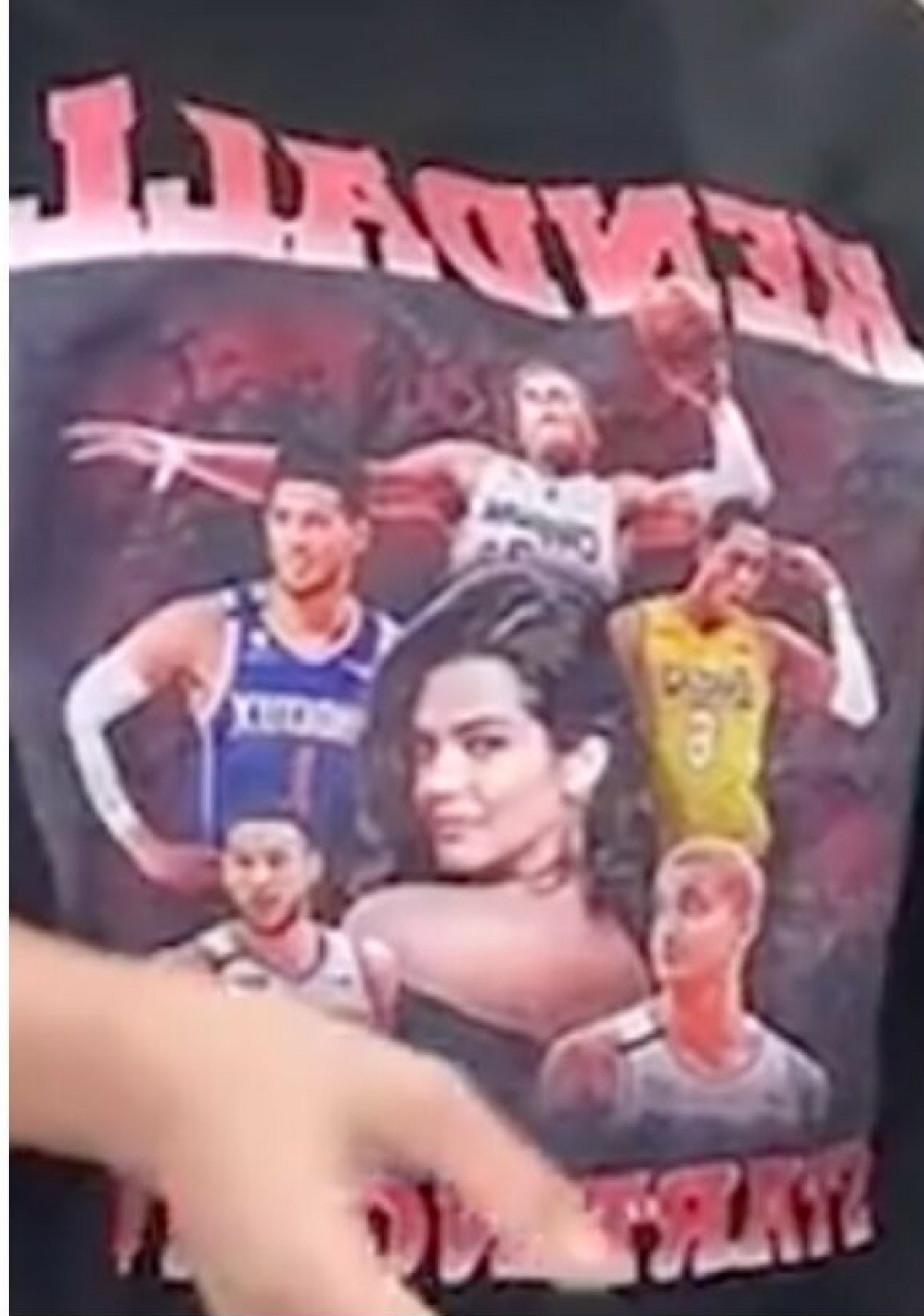 Принт представляет собой фото Кендалл Дженнер в окружении пяти ее предполагаемых бывших, игроков NBA: Девина Букера, Джордана Кларксона, Блейка Гриффина, Бена Симмонса и Кайла Кузмы. Снимок обрамляет крупная надпись «Kendall Starting Five» («Стартовая пятерка Кендалл»).