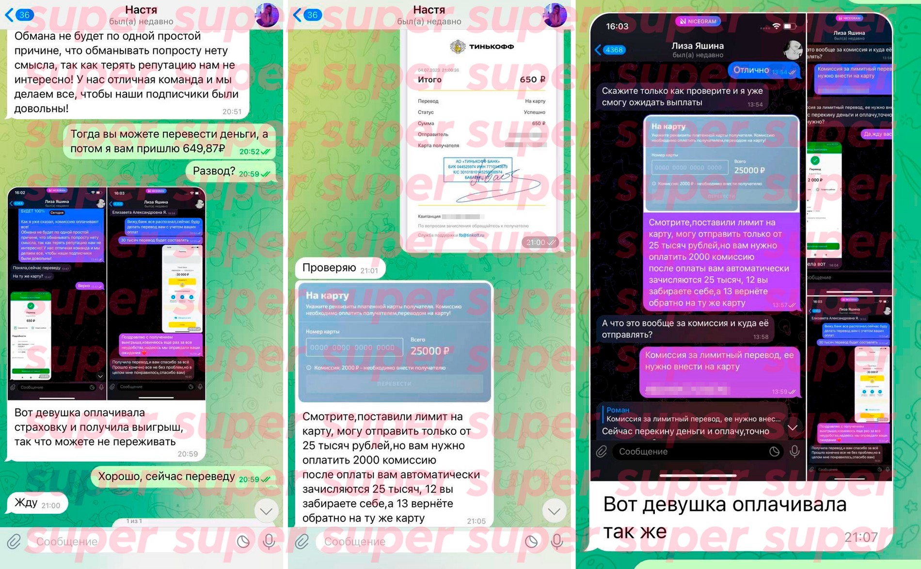 На удочку попалась одна из поклонниц блогера Света Абраменко (имя изменено). 24-летняя девушка обратилась в редакцию Super с уверенностью, что стала жертвой не мошенников, а самого Алексея. Подписчица телеграм-канала рассказала, как несколько раз перевела деньги якобы команде Алексея Столярова, которая «разыгрывала» 10 тысяч рублей.