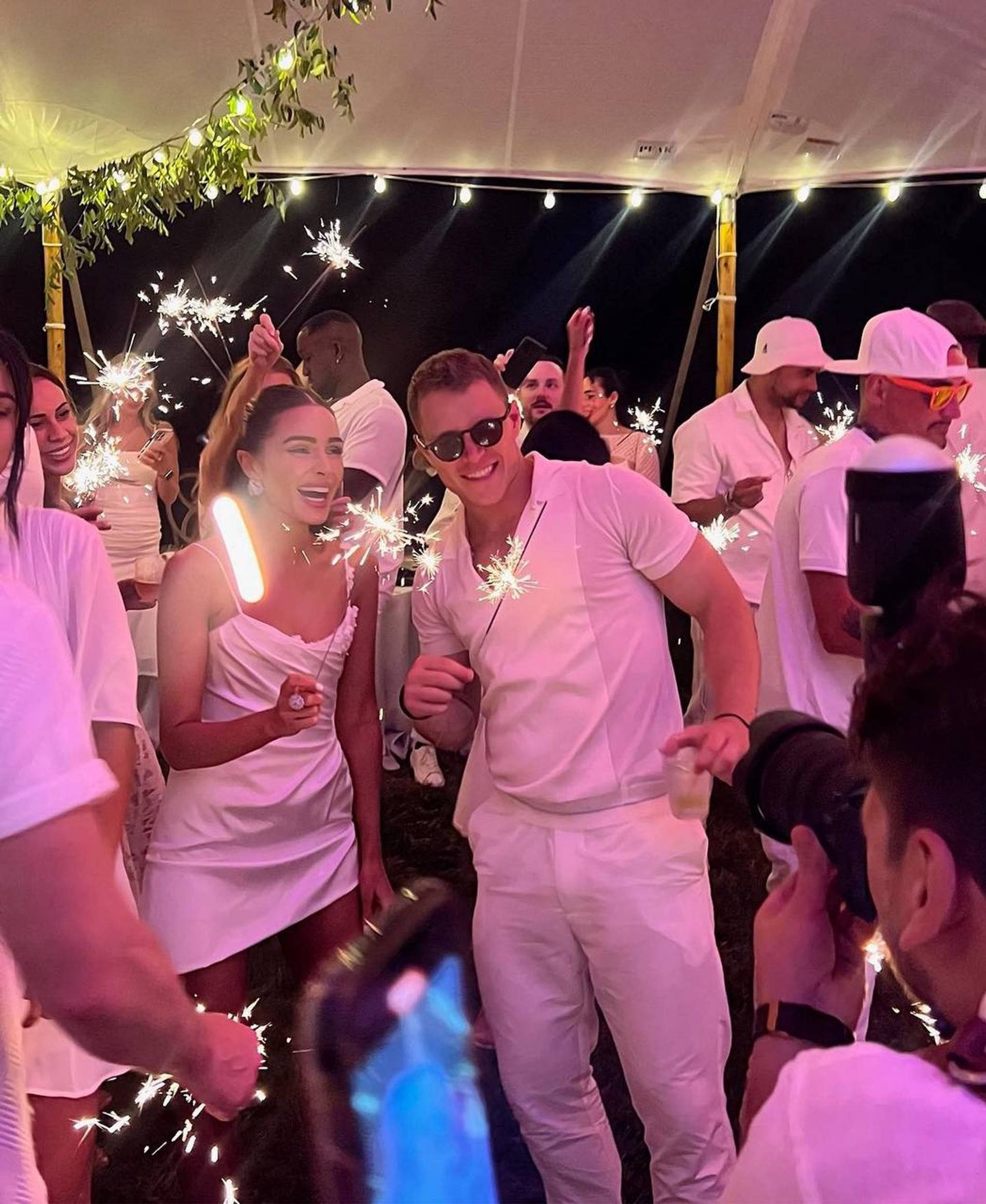 Оливия Калпо поделилась в Инстаграме (запрещен в РФ) серией снимков с вечеринки. На них счастливые влюбленные не отводят друг от друга глаз и без стеснения проявляют страстные чувства, целуясь и обнимаясь на глазах у близких. Для этого мероприятия Оливия и Кристиан выбрали белоснежные наряды: модель была в коротком мини-платье с вышивкой на груди, а футболист предстал в поло, брюках и кедах. Интересно, что все гости вечеринки должны были придерживаться особого дресс-кода, выбрав образы в белых тонах.