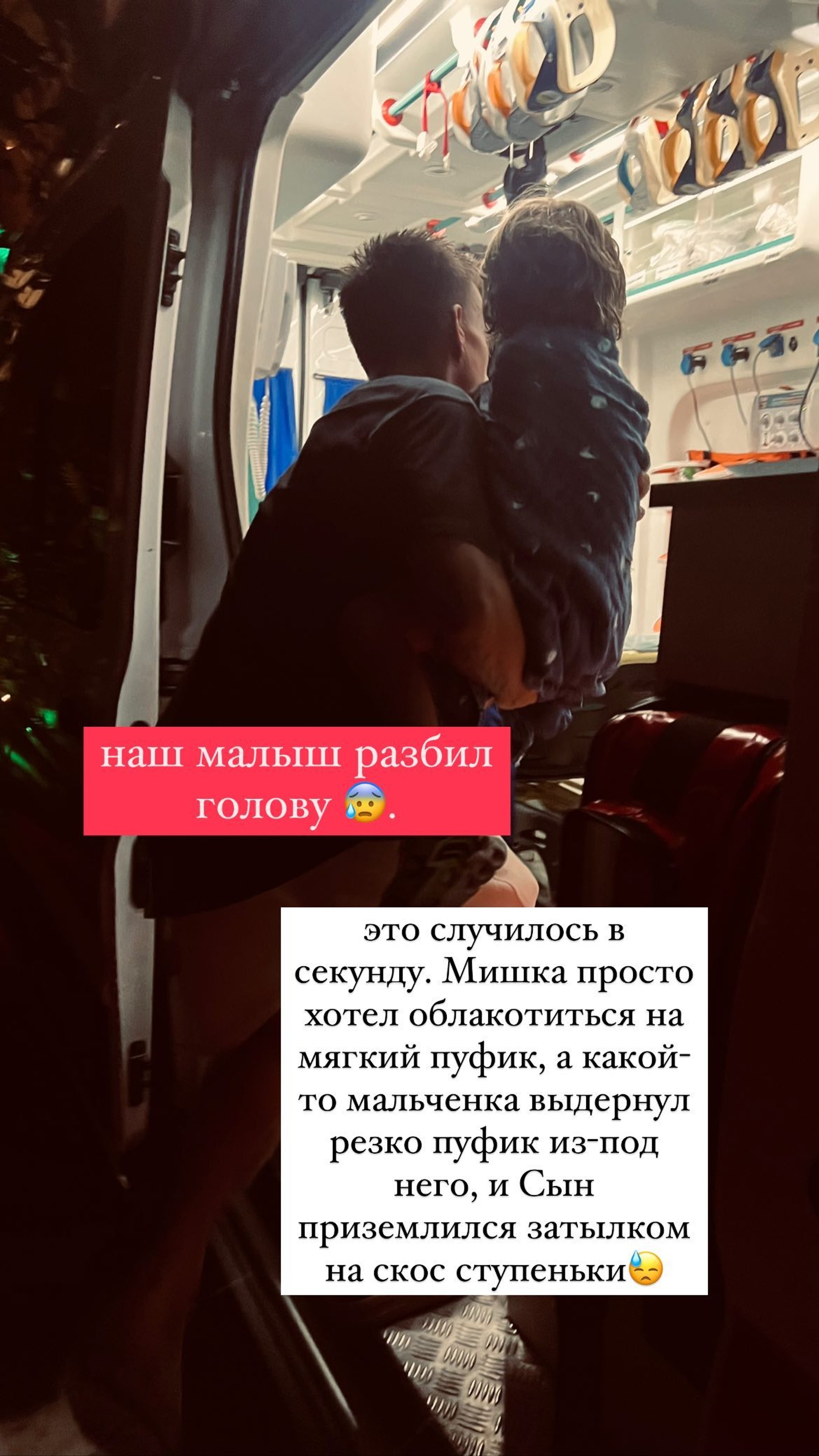 Отпуск Регины Тодоренко и Влада Топалова в Анталии явно пошел не по плану. Неприятность случилась с Мишей — старшим сыном звездной пары, которому в декабре стукнет пять лет. Как рассказала ведущая на своей страничке в Инстаграме (запрещен в РФ), мальчик играл с другими детьми и в разгар веселья приземлился затылком на скос ступени. Рана оказалась глубокой — к счастью, персонал отеля среагировал моментально и вызвал скорую. Ночь Миша вместе с родителями провел в госпитале. Судя по сторис, пока ребенка везли в больницу и зашивали рану, Влад и Регина ни на шаг не отходили от сына.