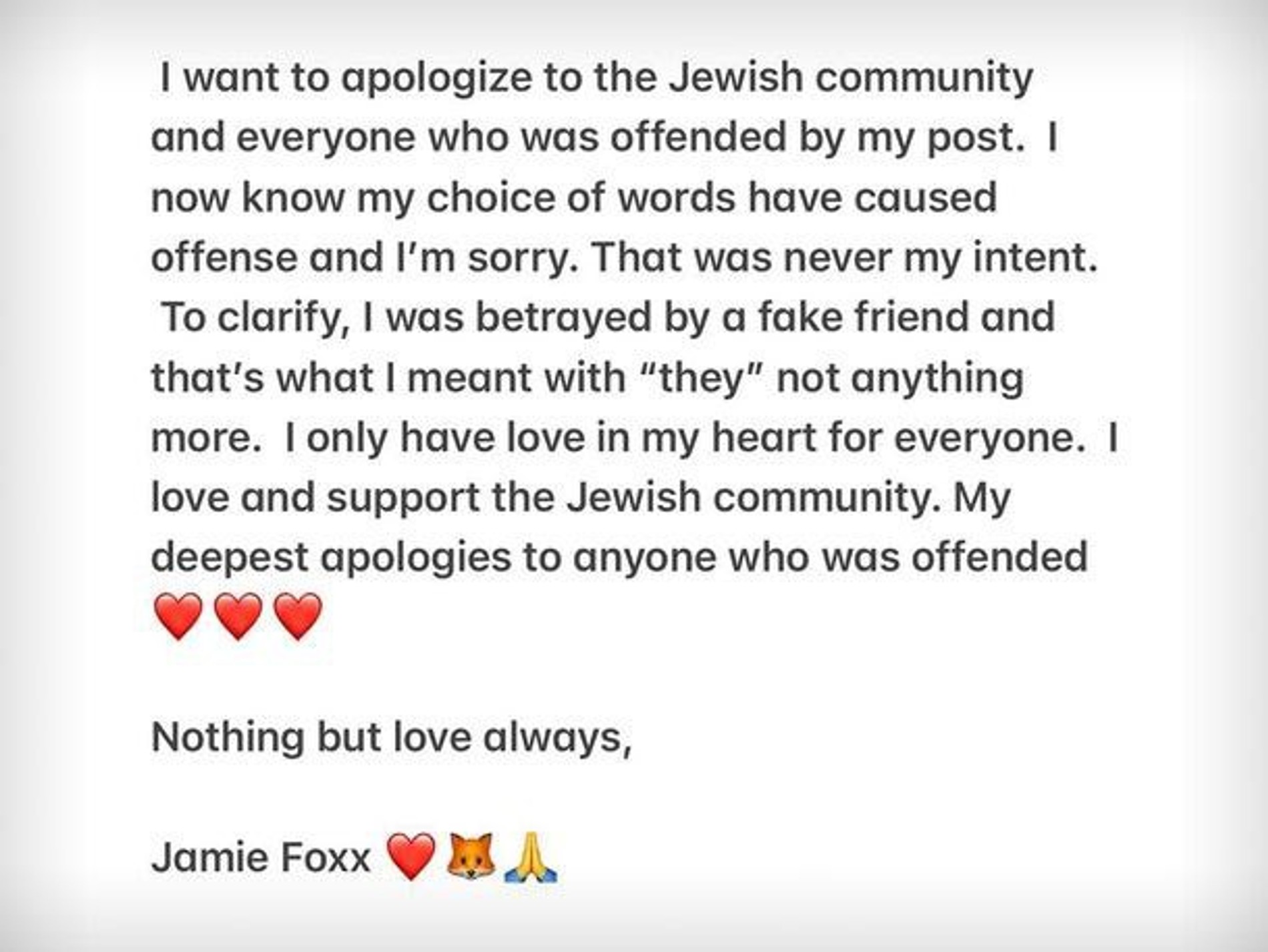Все началось с публикации Джейми Фокса в запрещенной сети со следующим текстом: «Они убили Иисуса. Что, думаешь, они сделают с тобой? #лживыедрузья и #лживаялюбовь». За считаные минуты пост завирусился, а на Фокса обрушился неугомонный хейт из-за антисемитизма. И хотя актер признался, что странный комментарий посвящен его другу, удалить «обращение» пришлось очень скоро. Но на этом история и не думала заканчиваться.
