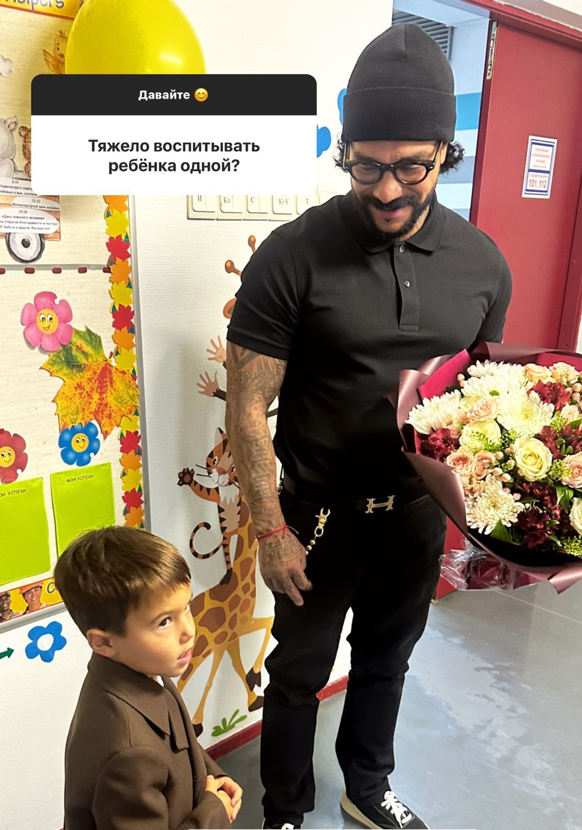 Ну а в качестве иллюстрации своих слов модель поделилась фотографией рэпера и их общего сына с детсадовской линейки. На которую Анастасия и Тимати, кстати, пришли вместе.