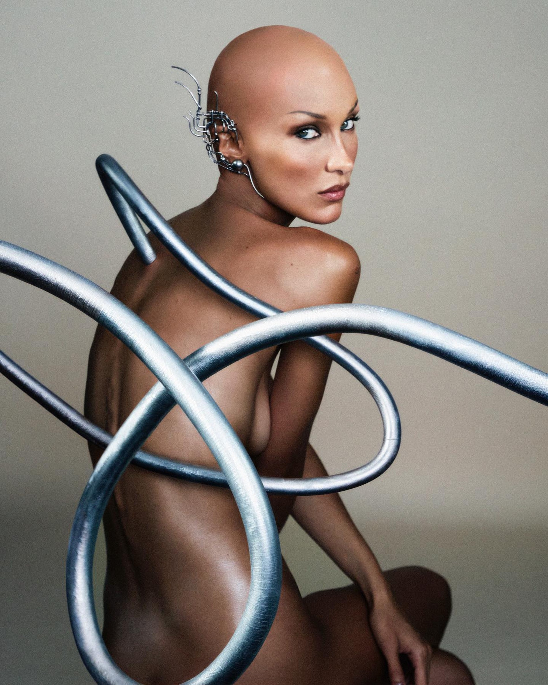 На днях в Сети появились снимки рекламной кампании Heaven by Marc Jacobs, в которой она приняла участие. Провокационный образ робота с лысой головой довольно непривычен для модели. Автором необычных снимков стал фотограф Карлейн Якобс, за образы отвечал британский стилист Даниэль Эмерсон, а вдохновлялись искусственным интеллектом. Не удивимся, если и он на этапе разработки проекта генерировал лицо Беллы по запросу «самая красивая женщина в мире».