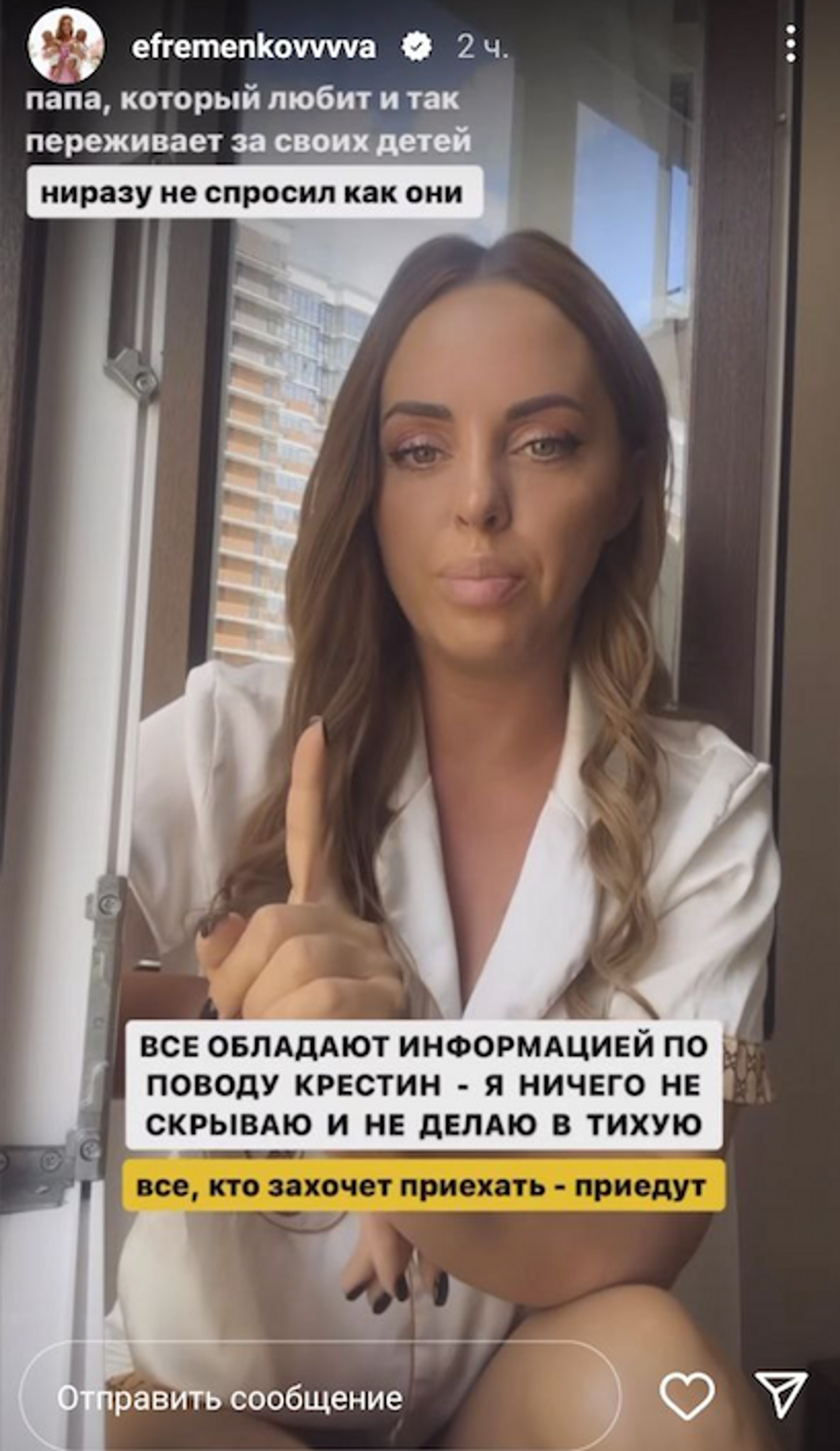 И вновь Юлия Ефременкова и Мондезир Свет-Амур публично выясняют отношения. В свежих сторис отец близнецов заявил, что он в шоке: на крестины родных детей его не пригласили, а о том, где и когда они состоятся, он вообще узнал из соцсетей. Такой поступок бывшей возлюбленной Мондезир назвал низким. Юлины ответные сторис не заставили себя долго ждать. Девушка речь отца своих детей назвала «мхатовским спектаклем» и рассказала, как все было на самом деле.
