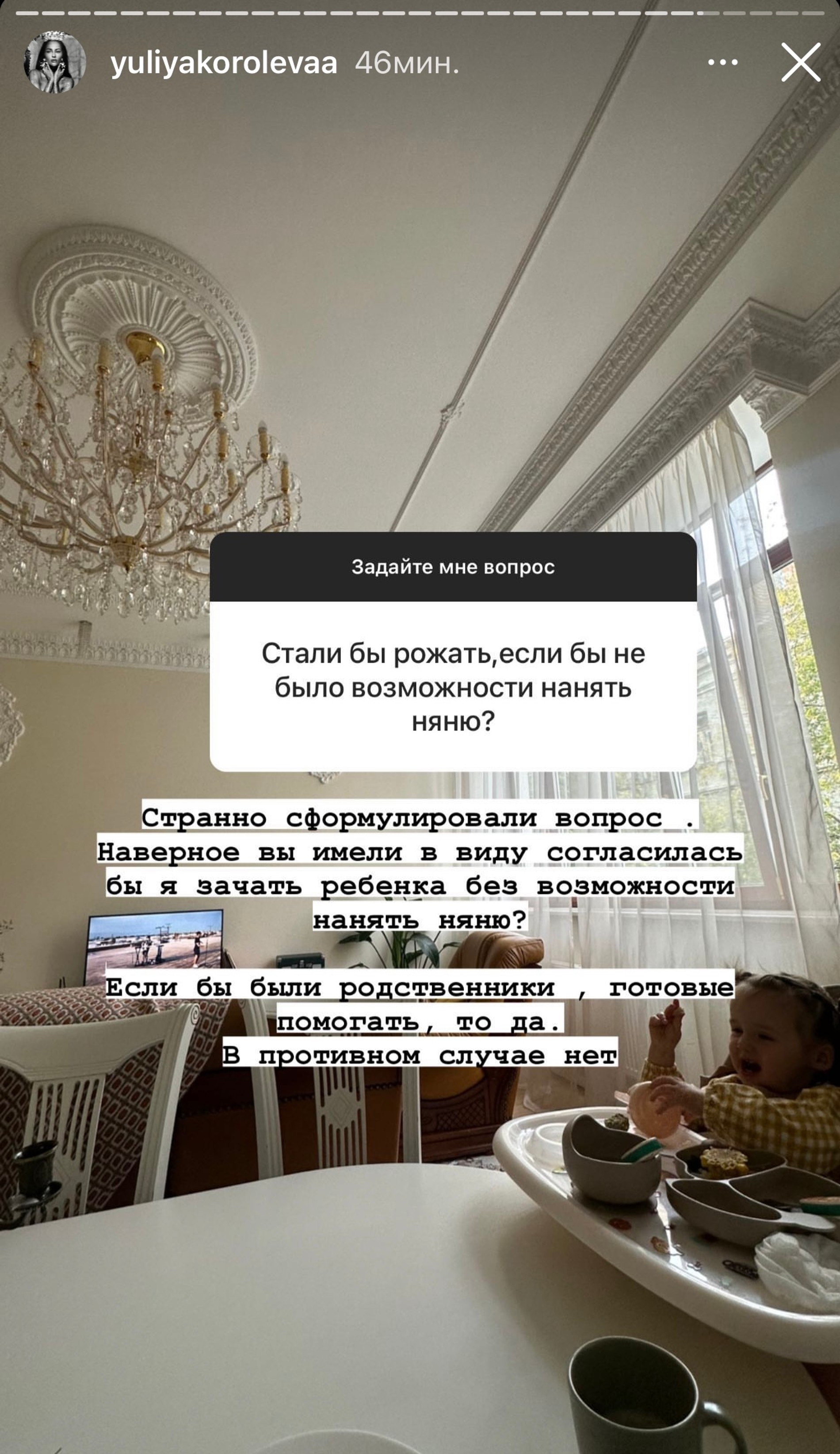 Ну и закончим на очень остром вопросе от подписчика Юлии. У девушки спросили, решилась ли она заводить ребенка, если бы знала, что ей некому будет помочь. На что Королева заявила, что не решилась бы на зачатие ребенка, не будь у нее возможности нанять няню или же родственников, которые были бы готовы помогать с малышкой. Благо, она может позволить себе профессиональную няню, которая, как призналась супруга рэпера, живет с ними и является полноценным членом семьи.