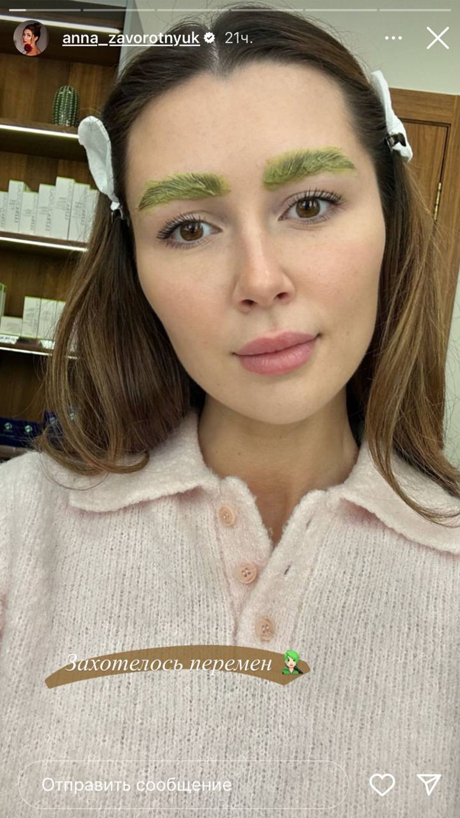 Ох уж эта смена сезонов — каждый раз хочется экспериментов с внешностью: кто-то просто стрижет каре, а кто-то готов пойти на что-то более экстремальное. Вот и дочь Анастасии Заворотнюк начала свой день в салоне красоты. «Захотелось перемен», — написала Анна, опубликовав в личном блоге сторис с желто-зелеными бровями. Мы, как, полагаем, и подписчики девушки, напряглись...