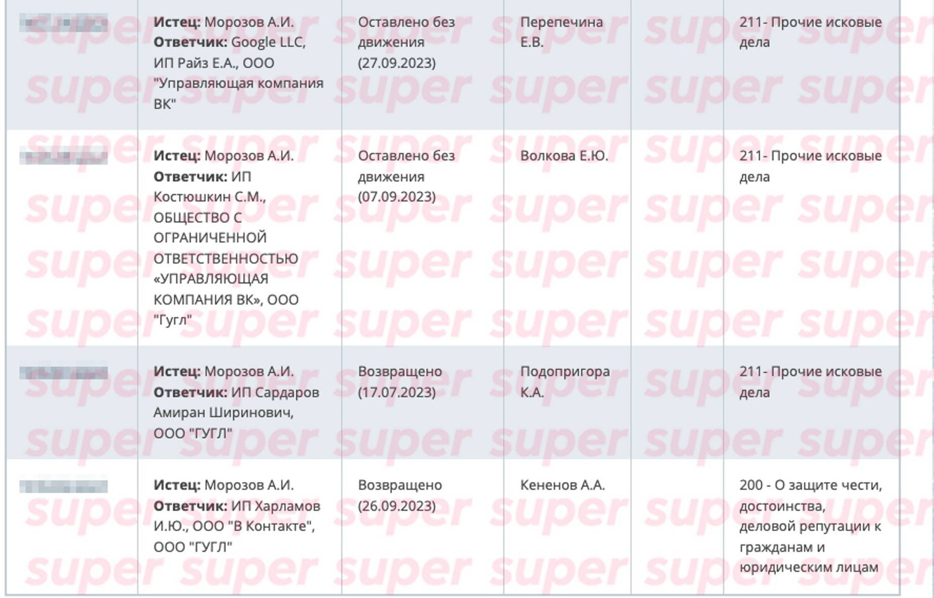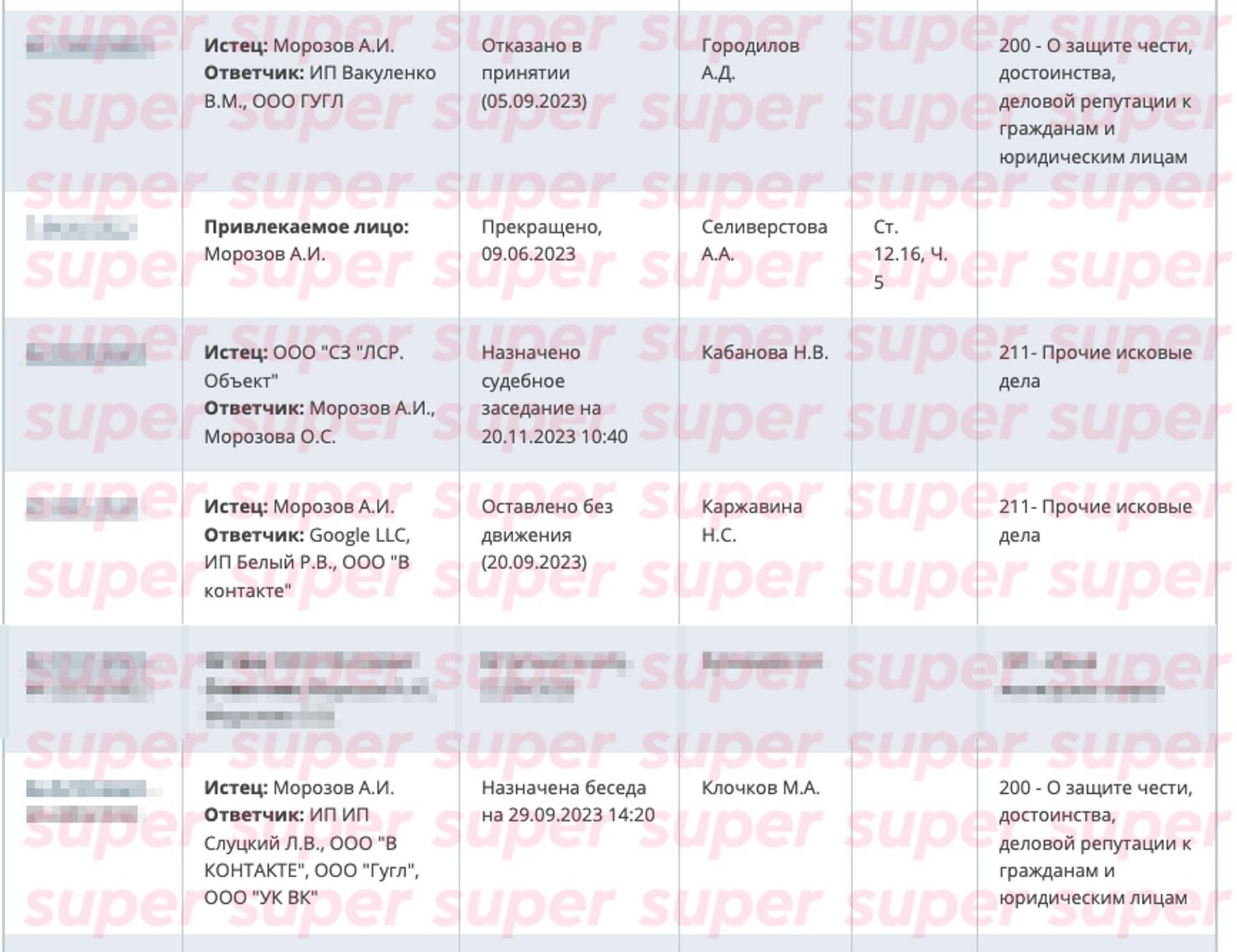 Главарь некогда одной из самых опасных уральских банд, отсидевший в тюрьме 19 лет, а ныне предприниматель и духовный лидер монашеско-рыцарского ордена «Братство Морозов – Златоуст» Александр Морозов в этом году подал в Московский городской суд более 15 исков на отечественных знаменитостей. Под раздачу попали Егор Крид, Баста, Настя Ивлеева, Гарик Харламов, Григорий Лепс, Дима Масленников, Павел Воля, Сергей Шнуров, Руслан Белый, Зоя Яровицина, Алексей Щербаков, Амиран Сардаров и Стас Костюшкин. Категорий судебных дел несколько: по спорам о защите неимущественных благ и о защите чести, достоинства и деловой репутации.