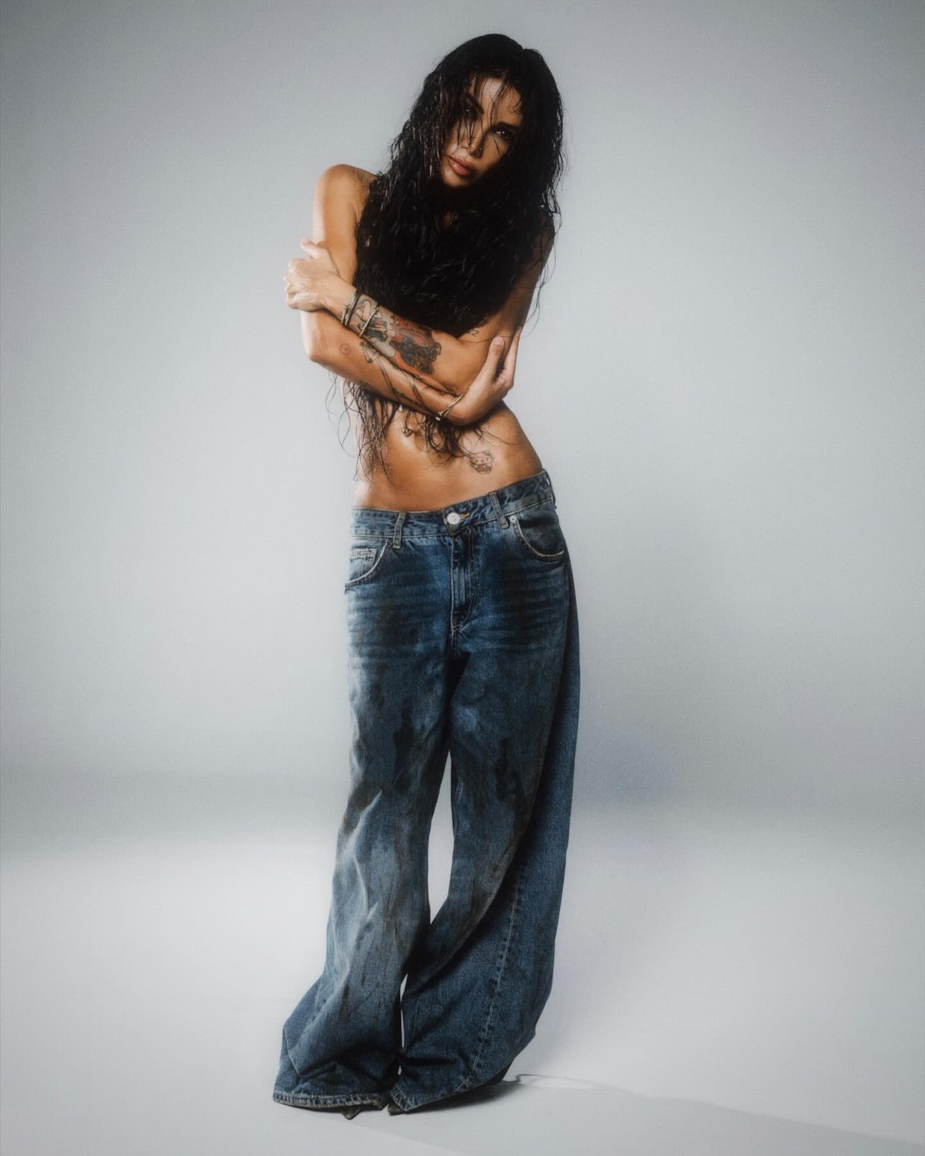 И шалость явно удалась. Мама Сэма и Элвиса от американской инстадивы (у которой, кстати, тоже подрастает двое детей) не отстает: грязь, мокрые волосы, джинсы оверсайз — все на месте. Но в отличие от оригинала версию Айзы фанаты однозначно приняли на ура. «Кайли Дженнер на максималках», «Крутой оммаж Кайли», «Как плакат Кристины Агилеры из 2000-х», — рассыпаются в комплиментах фолловеры.