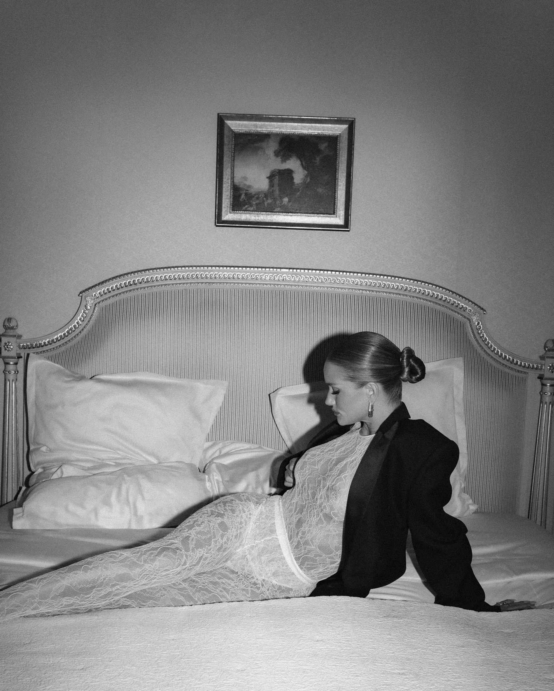 Супермодель Роузи Хантингтон-Уайтли решила пожелать своим поклонникам сладких снов так, как может только одна она. Британская красотка показала, как проводит длинные вечера на Парижской неделе моды, поделившись каруселью кадров из своего гостиничного номера с подписью «Bonne nuit» (фр. «Спокойной ночи»). Но покой после таких фото фанатам только снится: супруга Джейсона Стэйтема позирует на кровати в расстегнутом черном смокинге, прозрачном кружевном боди и таких же колготках. А мы-то уж думали, что скандальные образы Бьянки Ценсори никого не смогут вдохновить!