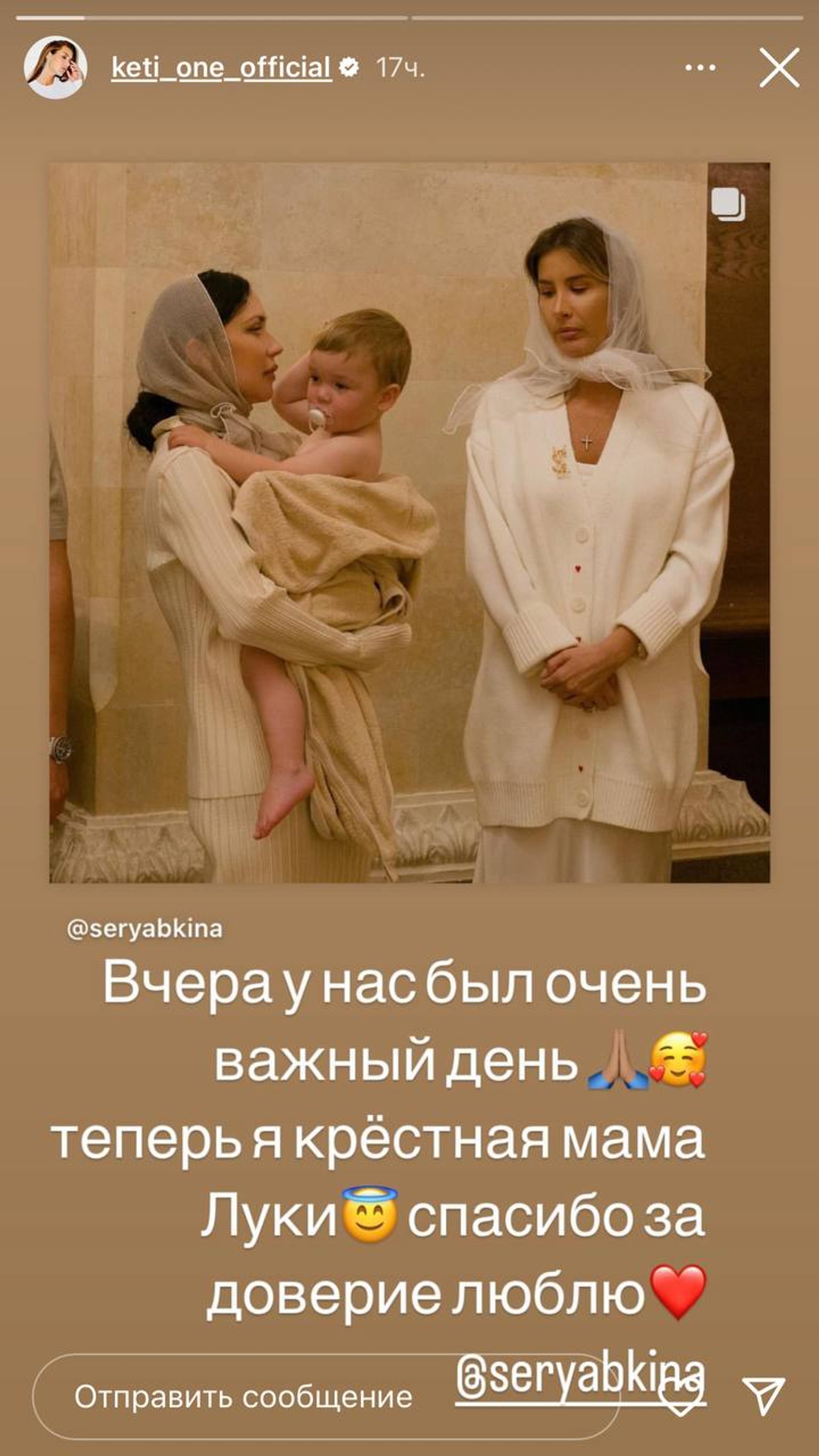 Кстати, крестная мама у Луки тоже звездная! Ею стала певица Кети Топурия. Для нее день выдался таким же важным, как и для родителей мальчика, о чем она радостно сообщила подписчикам.