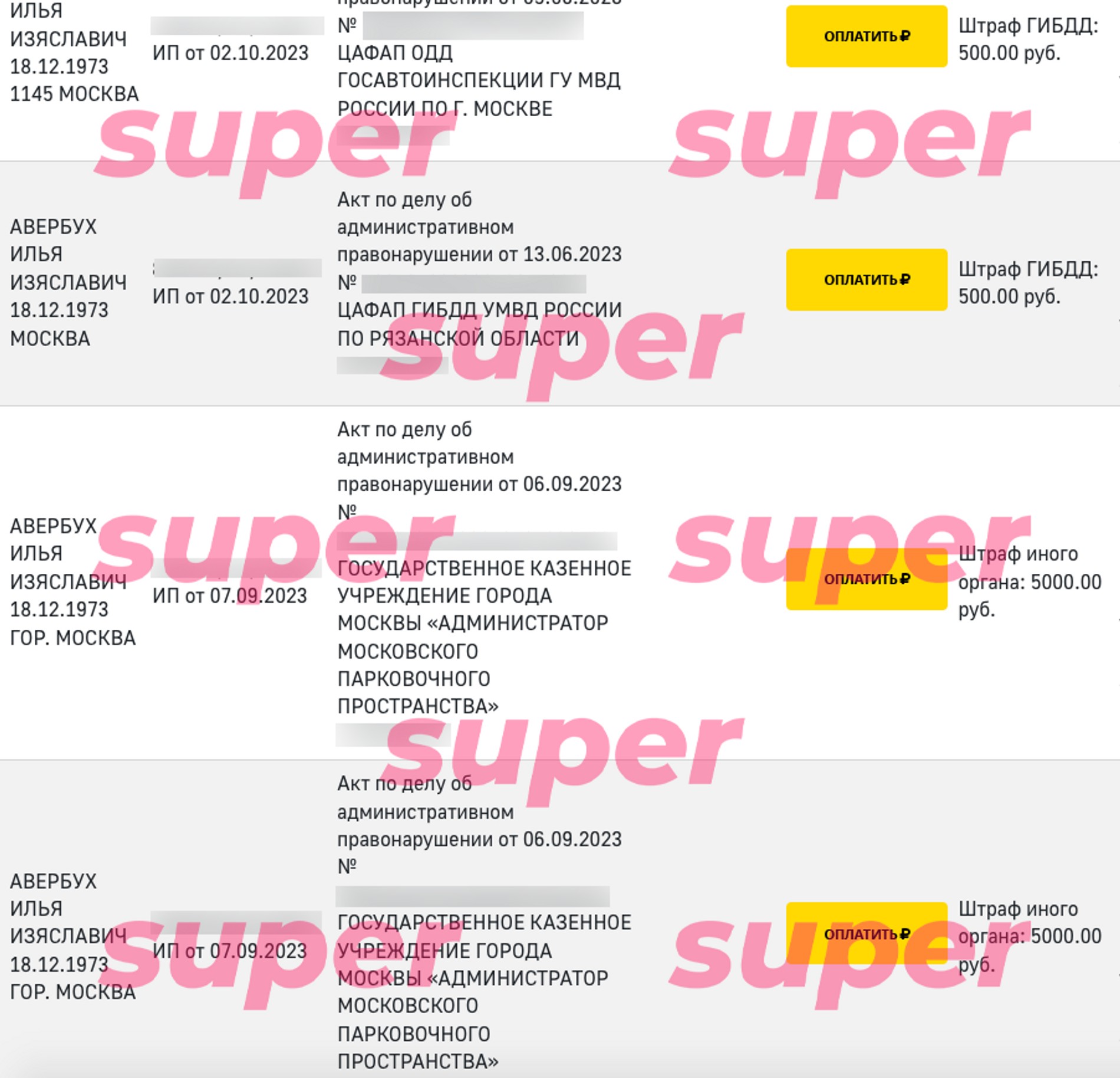 От кого, от кого, но от чемпиона мира по фигурному катанию и примерного семьянина Ильи Авербуха мы такого точно не ожидали. Сегодня Super узнал, что спортсмен — злостный нарушитель правил дорожного движения. На сайте Федеральной службы судебных приставов за пять с половиной месяцев у Авербуха накопилось 57 невыплаченных штрафов за ПДД и парковку. Это акты по делу об административном правонарушении от центра видеофиксации ГИБДД по Московской области, госучреждения «Администратор московского парковочного пространства» и Госавтоинспекции ГУ МВД России по Москве.