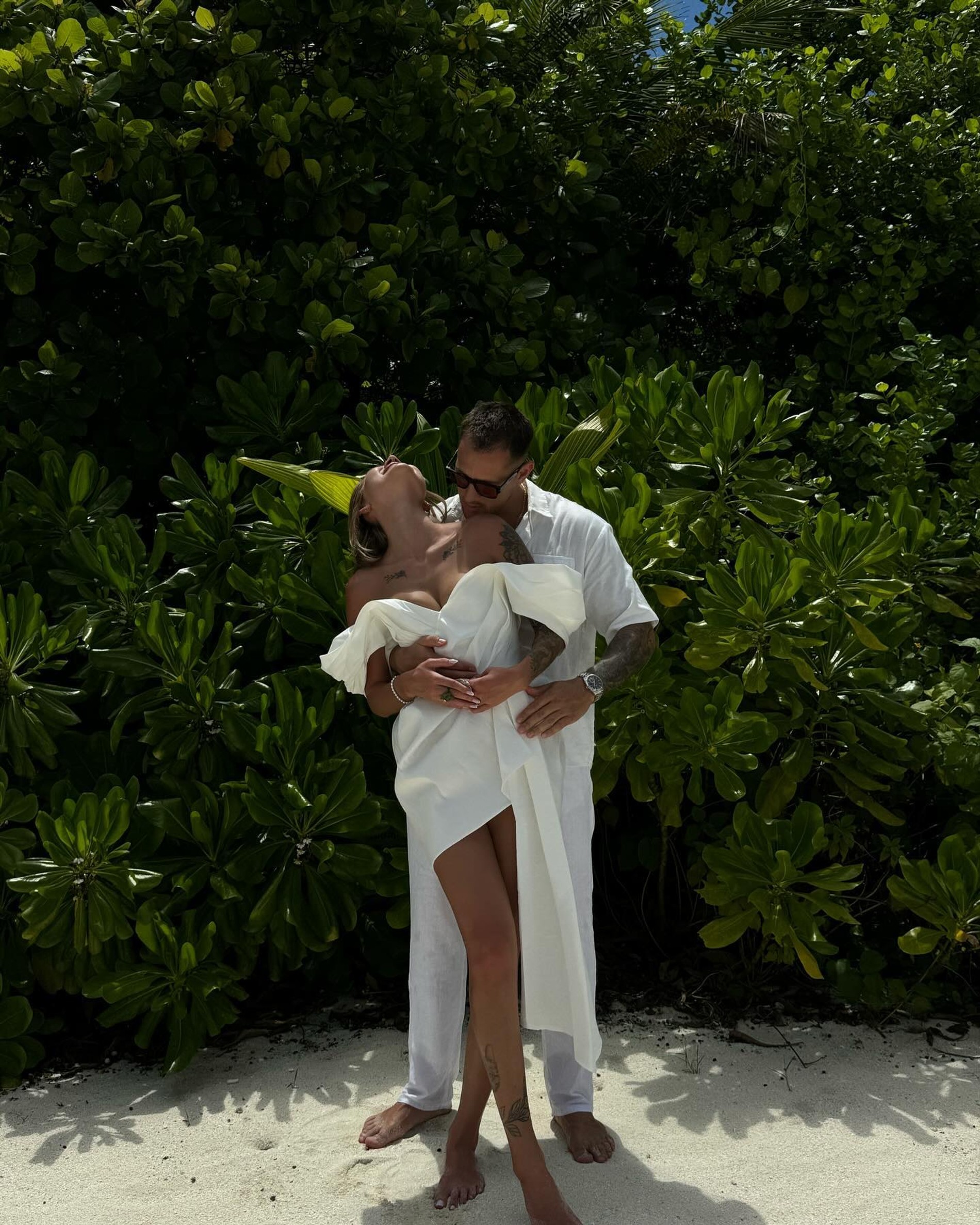 На роскошную виллу на Мальдивы Анита и Федор прилетели несколько дней назад якобы в отпуск. Но все стало ясно после того, как девушка анонсировала церемонию в инстаграме (запрещен в РФ): «Мы женимся. Все по-настоящему, платье, фата, машина, арка. Девочки, как вам платье?» Наряды у супругов и правда достойны внимания: Федор ограничился хлопковым белым костюмом, а Анита надела платье мини — просто, со вкусом и под стать мальдивской жаре. В оформлении алтаря золота-серебра тоже не было. Хейтеры скажут: «Скромно». А мы ответим: «Стильно!» Контента, кстати, пара наснимала еще на год вперед, предлагаем поразглядывать первую порцию.