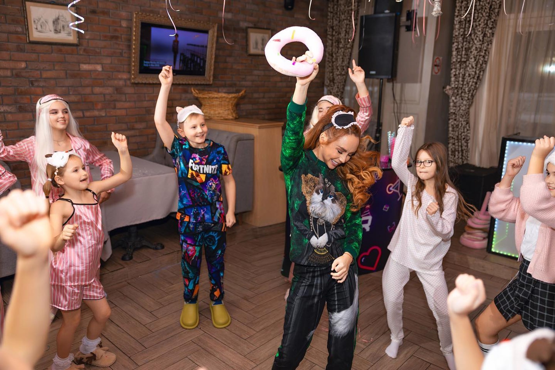 МакSим тоже принимала активное участие в празднике. Она соблюла дресс-код и надела зеленую пижаму. В такой же была Маша — подписчиков певицы эта деталь умилила особенно. Но, как настоящая именинница, девочка к концу праздника сменила наряд.