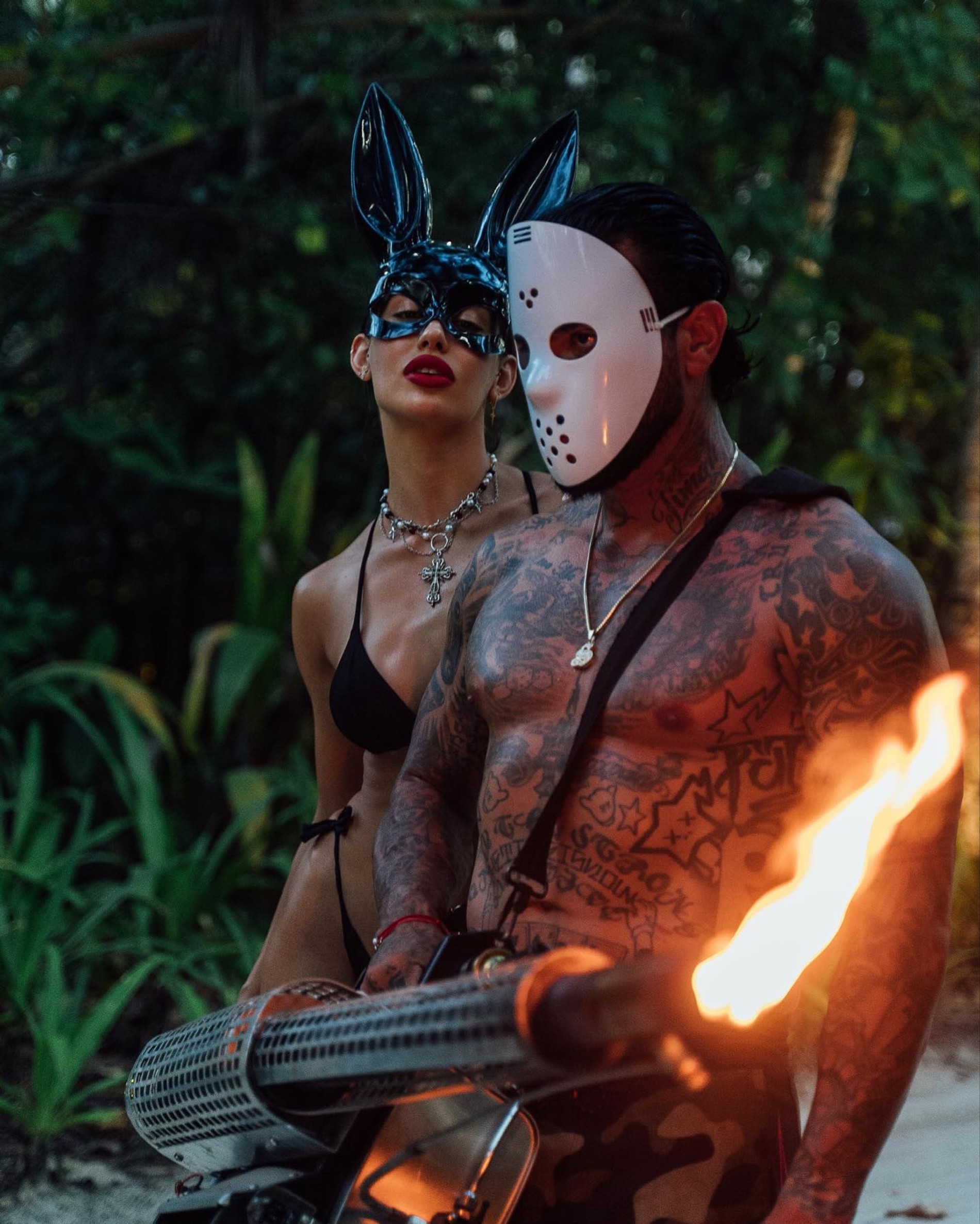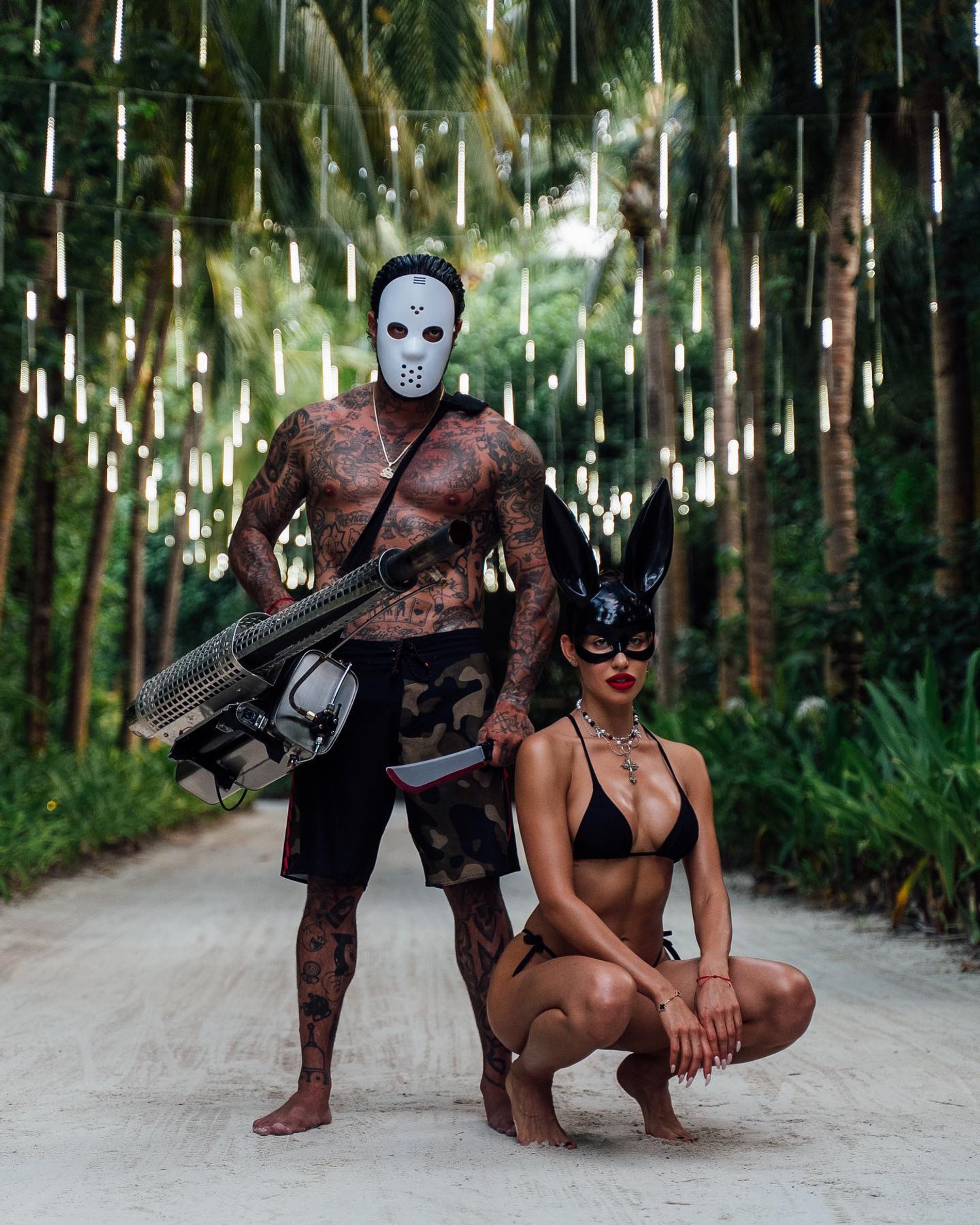 У голливудских селебрити Хэллоуин по масштабам уже давно переплюнул Met Gala. И пока западные звезды соревнуются за самый эффектный и необычный костюм, отечественные выбирают варианты попроще. Вот, к примеру, рэпер Тимати и его возлюбленная Валентина Иванова с нарядами решили не заморачиваться от слова совсем: на вечеринку в канун Дня всех святых они выбрали совсем минималистичные образы и появились в пляжной одежде. Ну а чтобы было понятно, что за праздник, приправили свои луки масками, парой капель фейковой крови и бутафорским ножом (его, надеемся, позаимствовали не у Бритни Спирс).