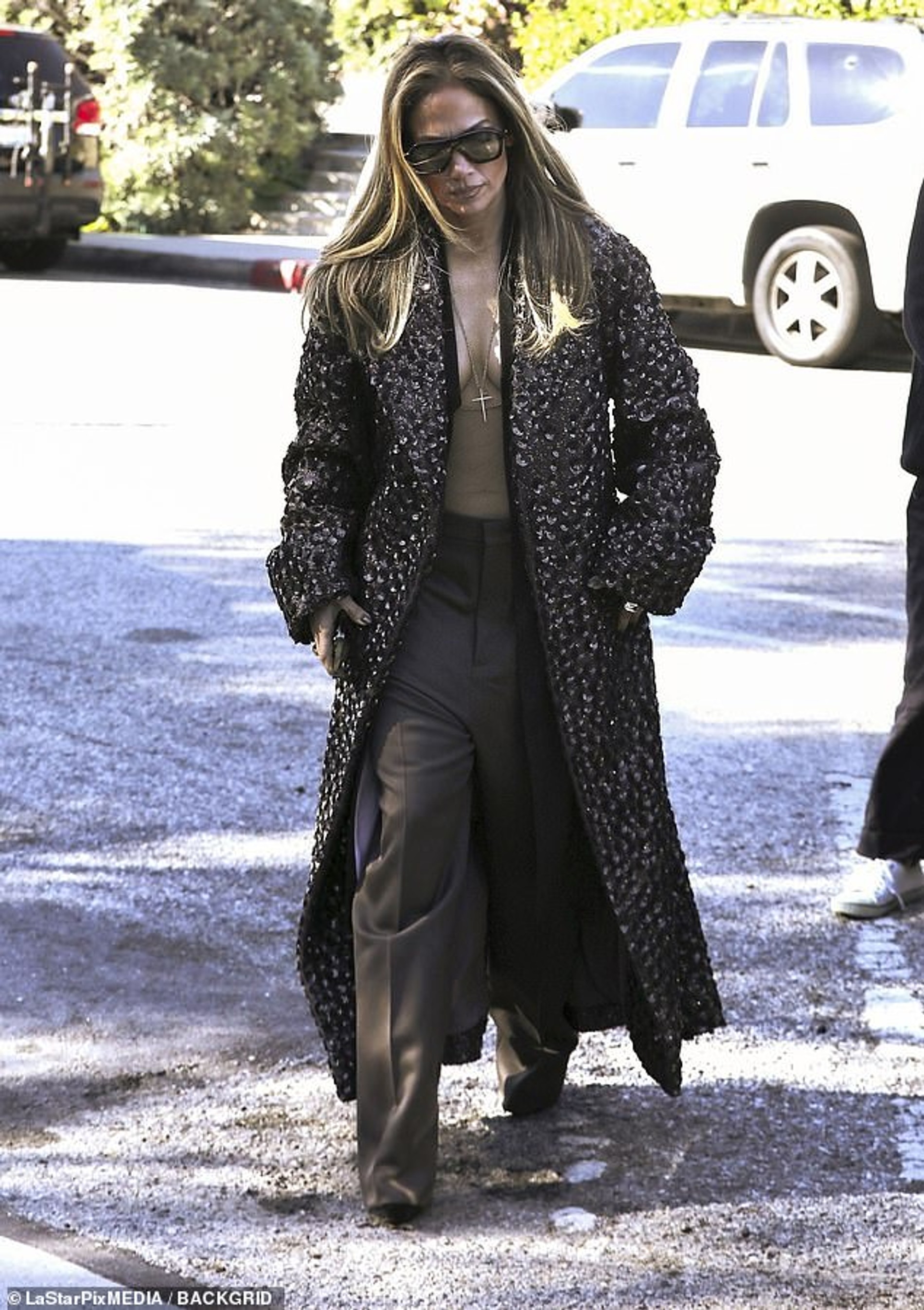 Он настолько яркий, что не обратить на него внимание было просто невозможно. Причем за счет всего одной вещи: на Дженнифер, поверх топа с внушительным декольте и широких брюк оливкового цвета, было в буквальном смысле ослепительное пальто со множеством крупных блесток. Удивительно, но столь нарядный образ певицы не смотрится нелепо или вычурно при свете дня. Так может только Джей Ло! И, наверное, так можно только Джей Ло...