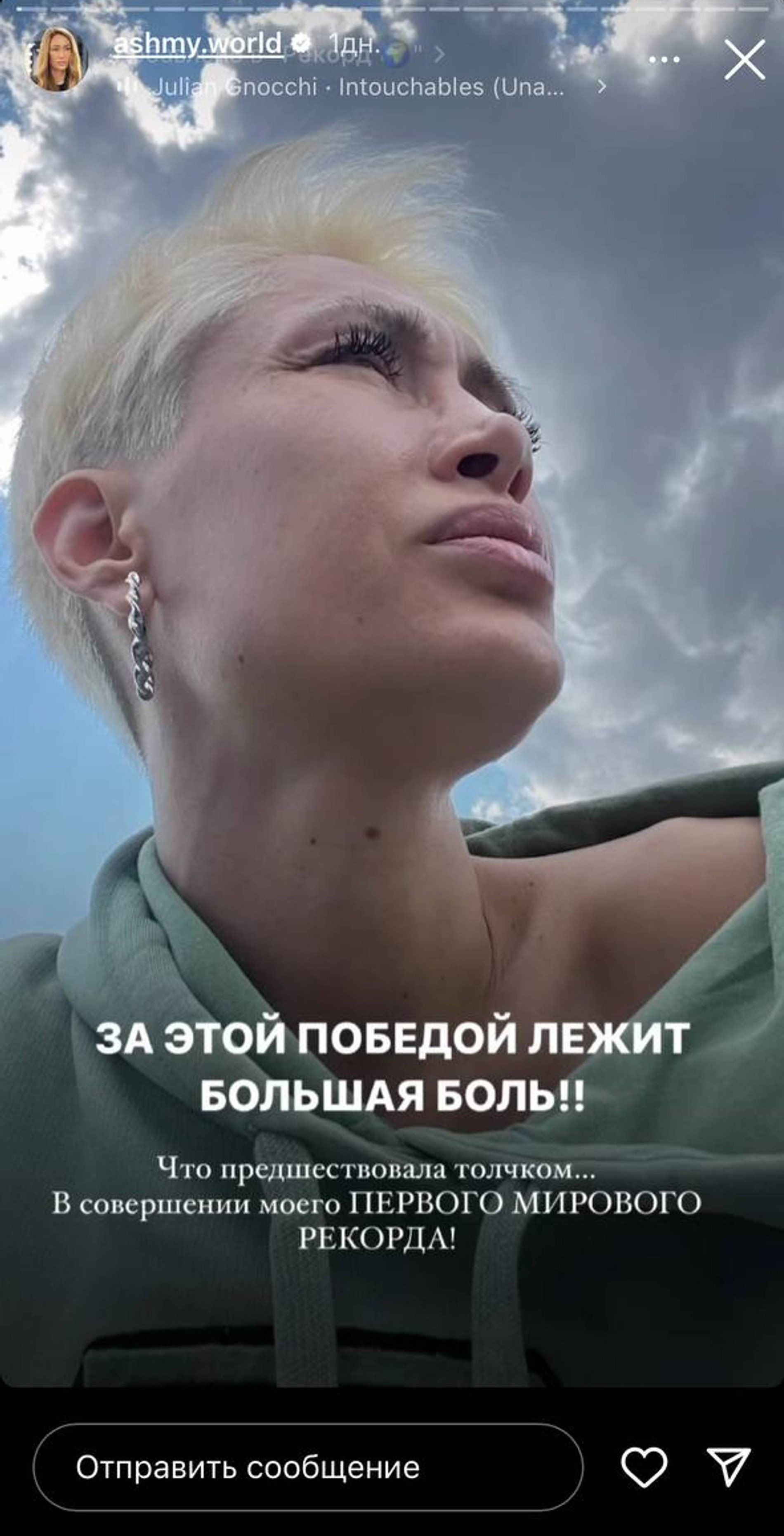 Накануне Алена вышла на связь с подписчиками в Инстаграме* и призналась, что спустя годы боли и страданий она пришла к своей победе. Сначала мы не поняли, что происходит. Ашмарина долго рассказывала обо всем пережитом за последние 20 лет, но потом наконец раскрыла: она поставила мировой рекорд. «Я дала себе обещание, что вкладывать всю свою энергию буду в себя и в свои достижения... Спустя полгода я осуществила задуманное... и очень горю поделиться с вами своей победой», — интригующе начала девушка.